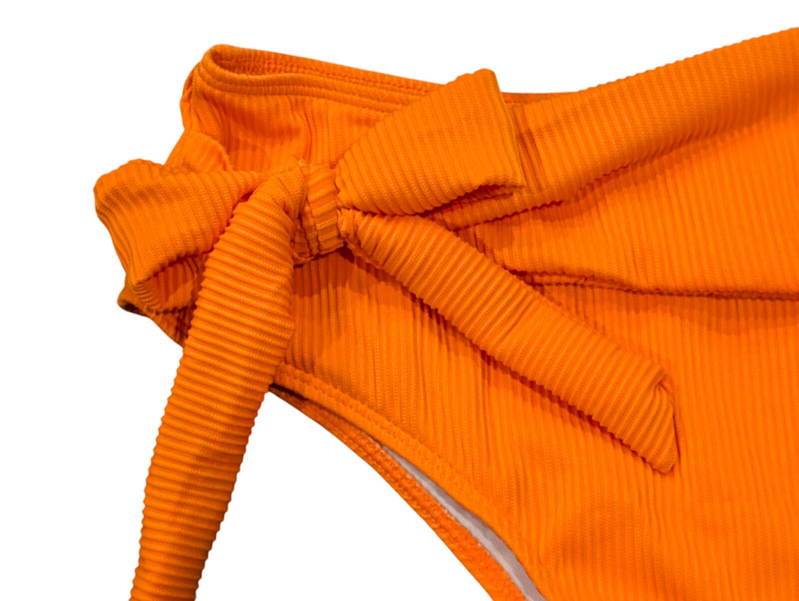 This is a beautiful super sexy orange ribbed knit bikini two-piece. Size large. Super cute style! Fits true to size.