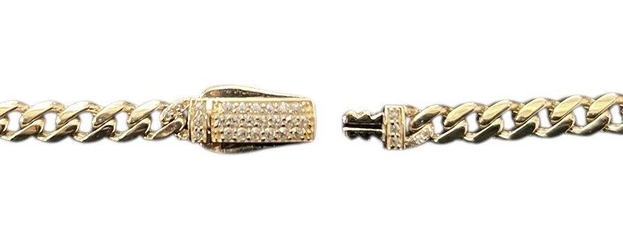 Type: AnkletWeight: 5.2Karat: 14ktMetal: Yellow GoldGender: Women'sStyle: CurbSize / Length: 10"Owner applied: 14K USStone 1 quantity: 30Stone 1 shape: RoundStone 1 color: ClearStone 1 weight (total): .30Stone 1 type: Cubic ZirconiaCondition:Used