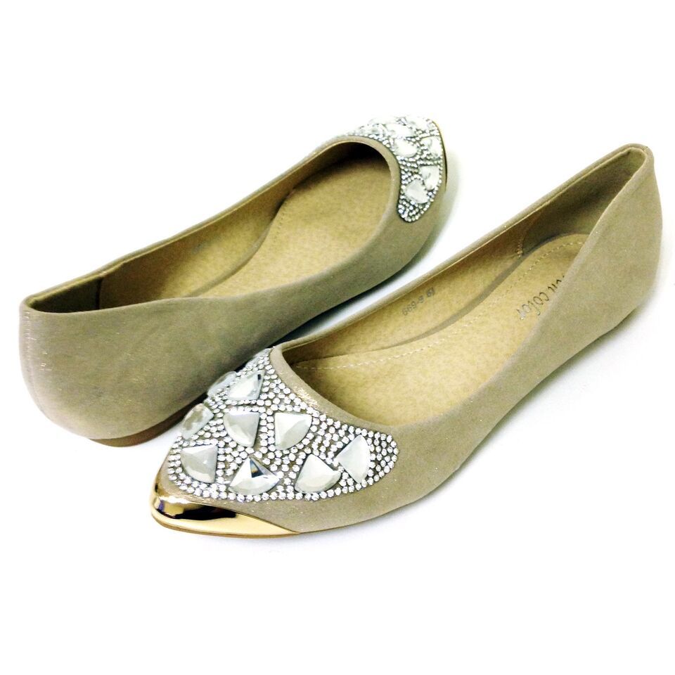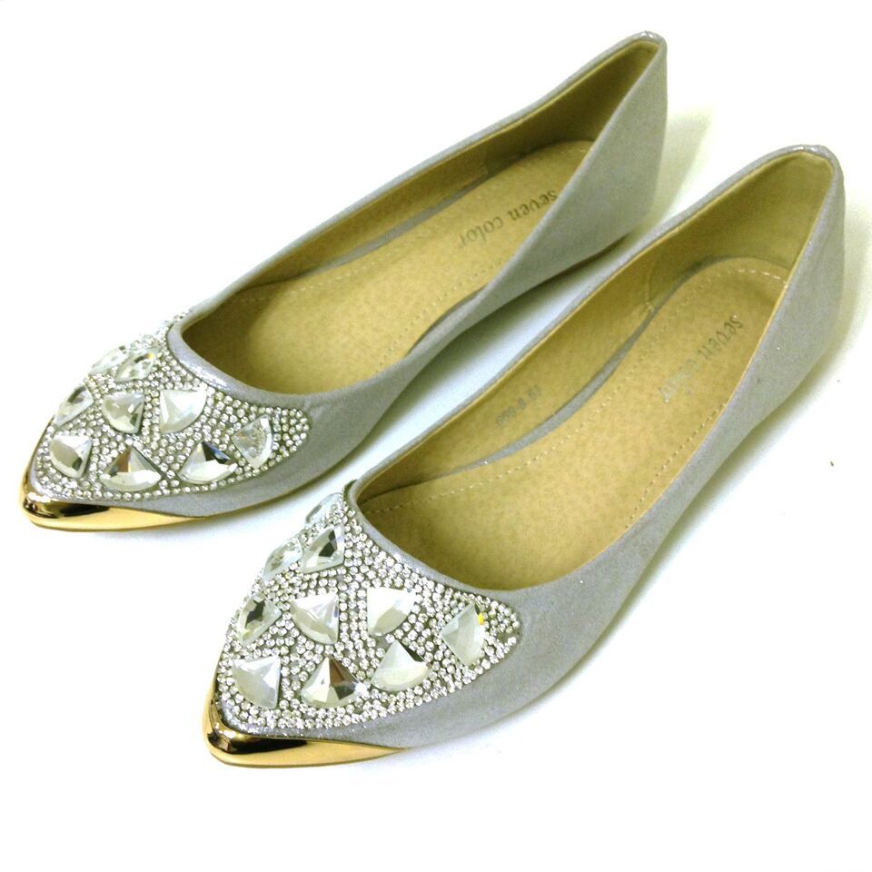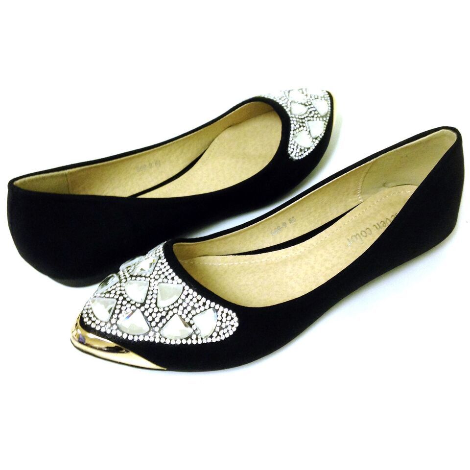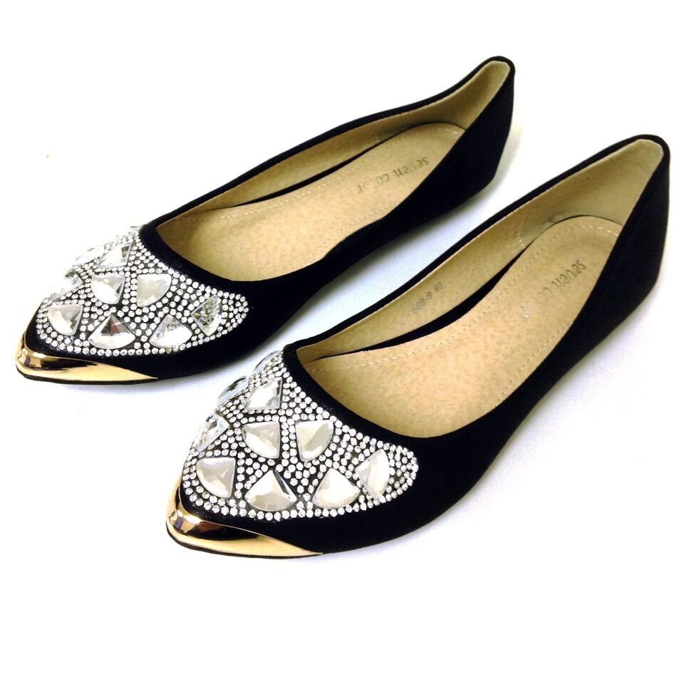 - Women's Ballet Flats Shimmer Slip On Pointed Toe Rhinestone Casual Shoes, Sizes