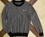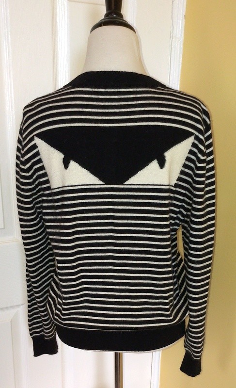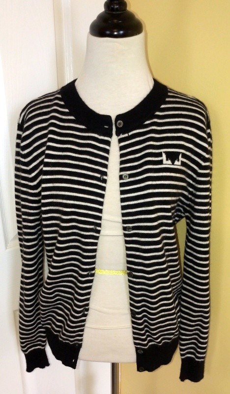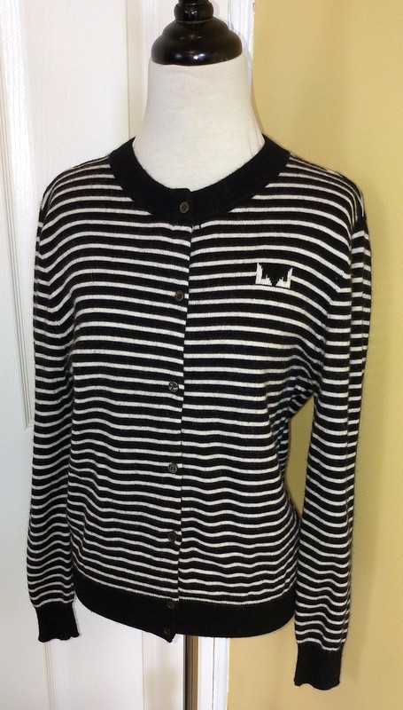 Women's Luxurious Mink Cashmere Cardigan Sweater. Black and ivory striped sweater is a women's size L and measures: