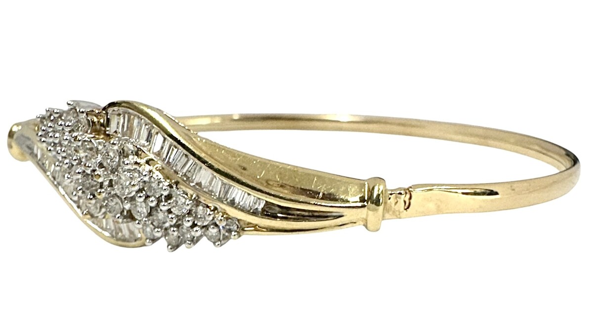 Type: BraceletWeight: 4.5Karat: 14ktMetal: Yellow and White GoldGender: Women'sStyle: FancySize / Length: 7"Owner applied: naStone 1 quantity: 28Stone 1 shape: RoundStone 1 color: ClearStone 1 weight (total): .84Stone 1 type: DiamondStone 2 Quantity: 27Stone 2 Shape: BaguetteStone 2 Color: ClearStone 2 Weight (Total): .81Stone 2 Type: DiamondCondition:Used