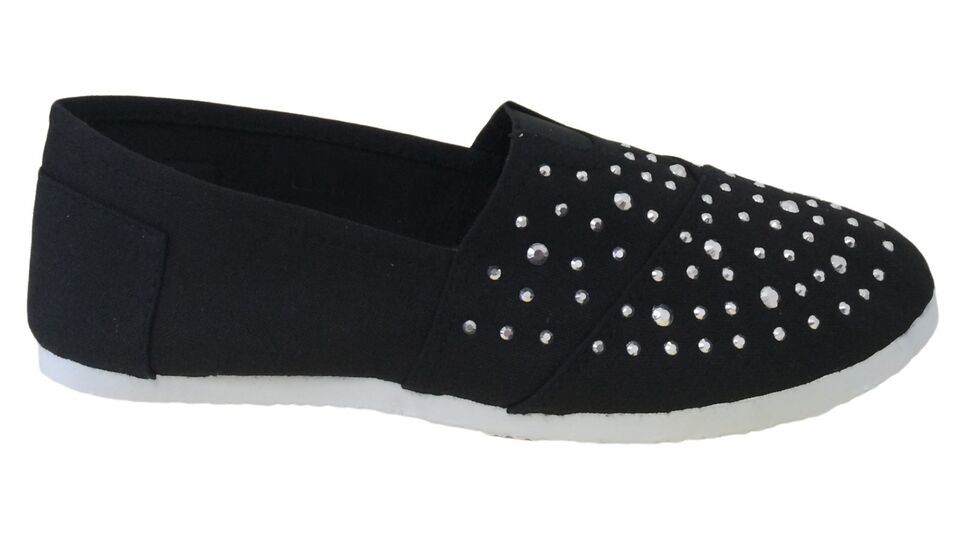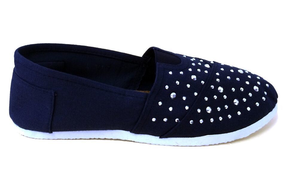 New Women's Canvas Ballet Flats Rhinestones Slip On Espadrille Loafers Casual