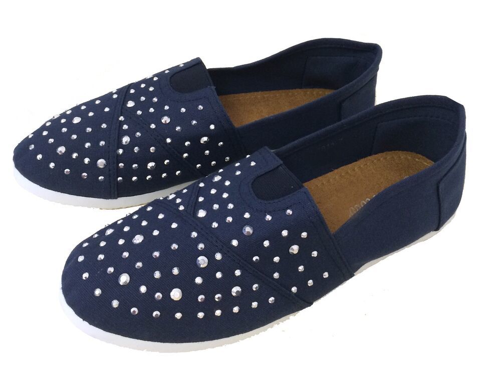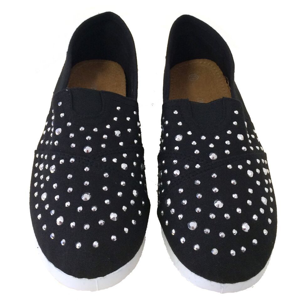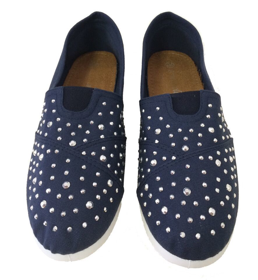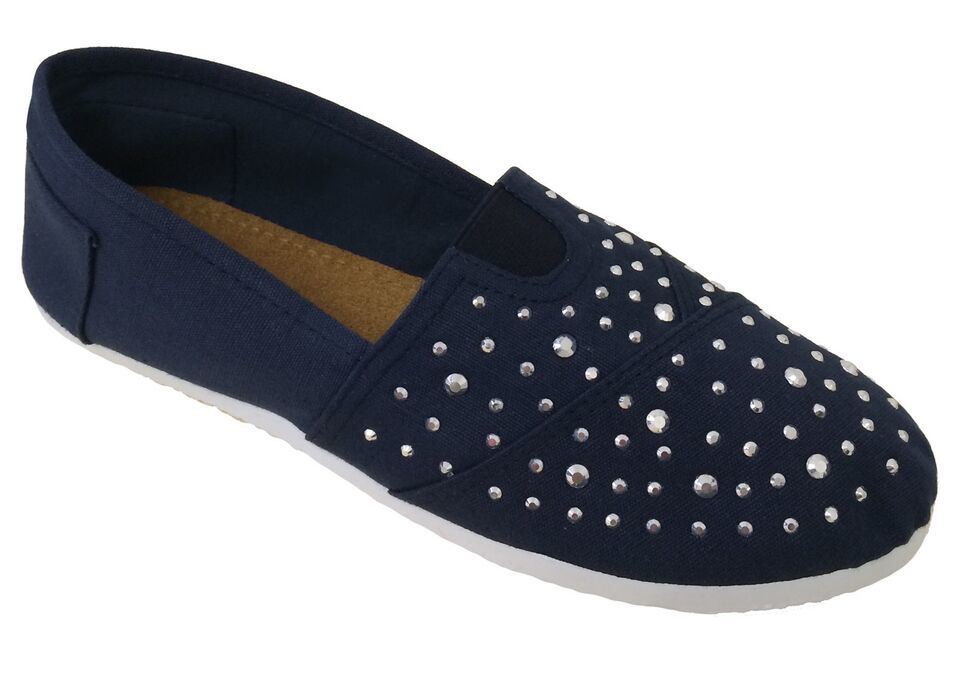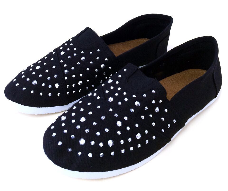 - Women's Canvas Ballet Flats Rhinestones Slip On Espadrille Loafers Casual Shoes