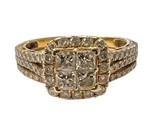 Type: Cluster ringWeight: 2.6Karat: 10ktMetal: Yellow GoldGender: Women'sStyle: ClusterSize / Length: 6Owner applied: noneStone 1 quantity: 4Stone 1 shape: PrincessStone 1 color: ClearStone 1 weight (total): .20Stone 1 type: DiamondStone 2 Quantity: 75Stone 2 Shape: RoundStone 2 Color: ClearStone 2 Weight (Total): .75Stone 2 Type: DiamondCondition:Used