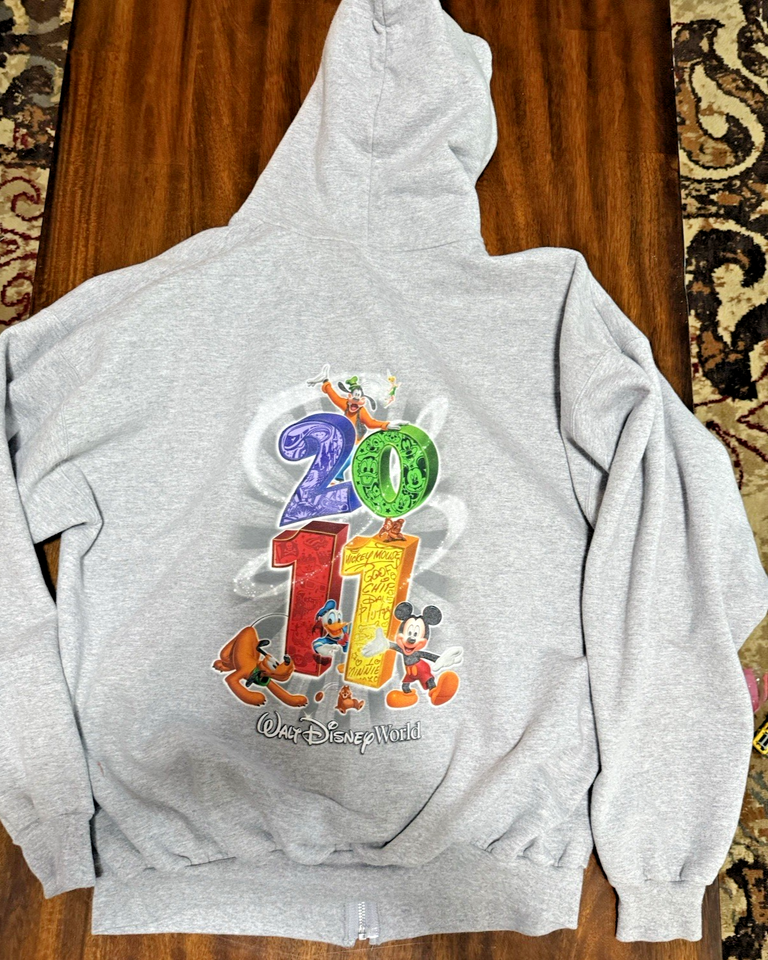 - Women's Disney Disneyland 2011 Zip Up Hoodie Sweatshirt Gray Size XL