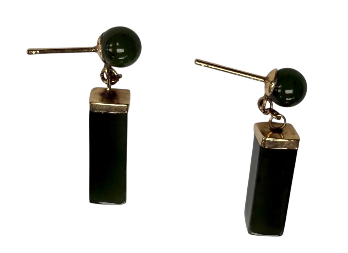 Type: EarringsWeight: 2.1Karat: 14ktMetal: Yellow GoldGender: Women'sStyle: DangleSize / Length: .25"Owner applied: 14kStone 1 quantity: 4Stone 1 color: GreenStone 1 shape: OtherStone 1 weight (total): 3.0Stone 1 type: JadeCondition:Used
