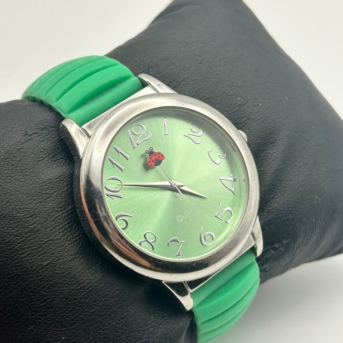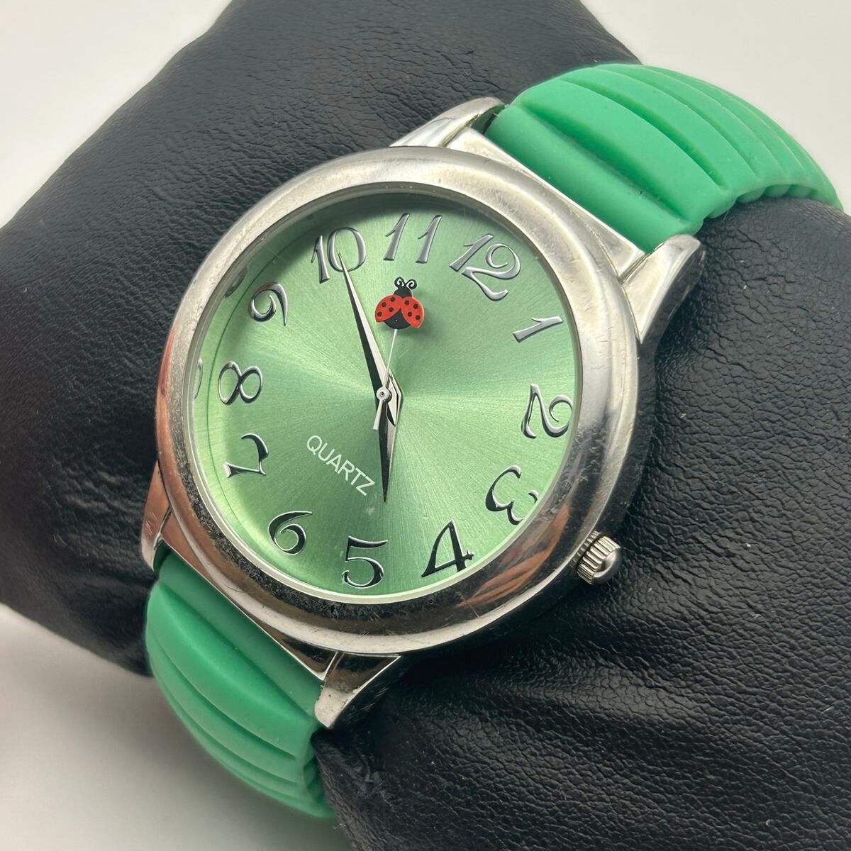 - Women’s Fashion Watch Lady Bug Green Stretch Band Working New Battery