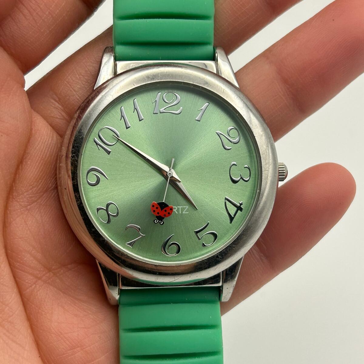 This adorable women's fashion watch features a fun ladybug design and a comfortable green stretch band. The watch is in working condition and has a brand new battery installed. It's perfect for adding a touch of whimsy to any outfit! The green band is a perfect color for spring! Get it before it's gone!