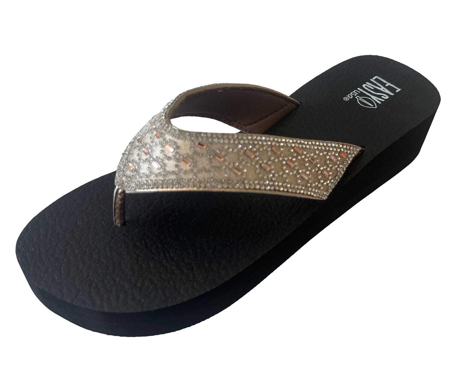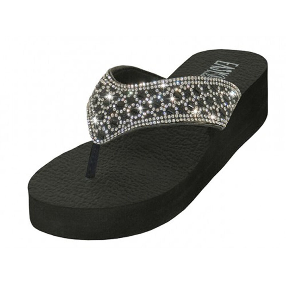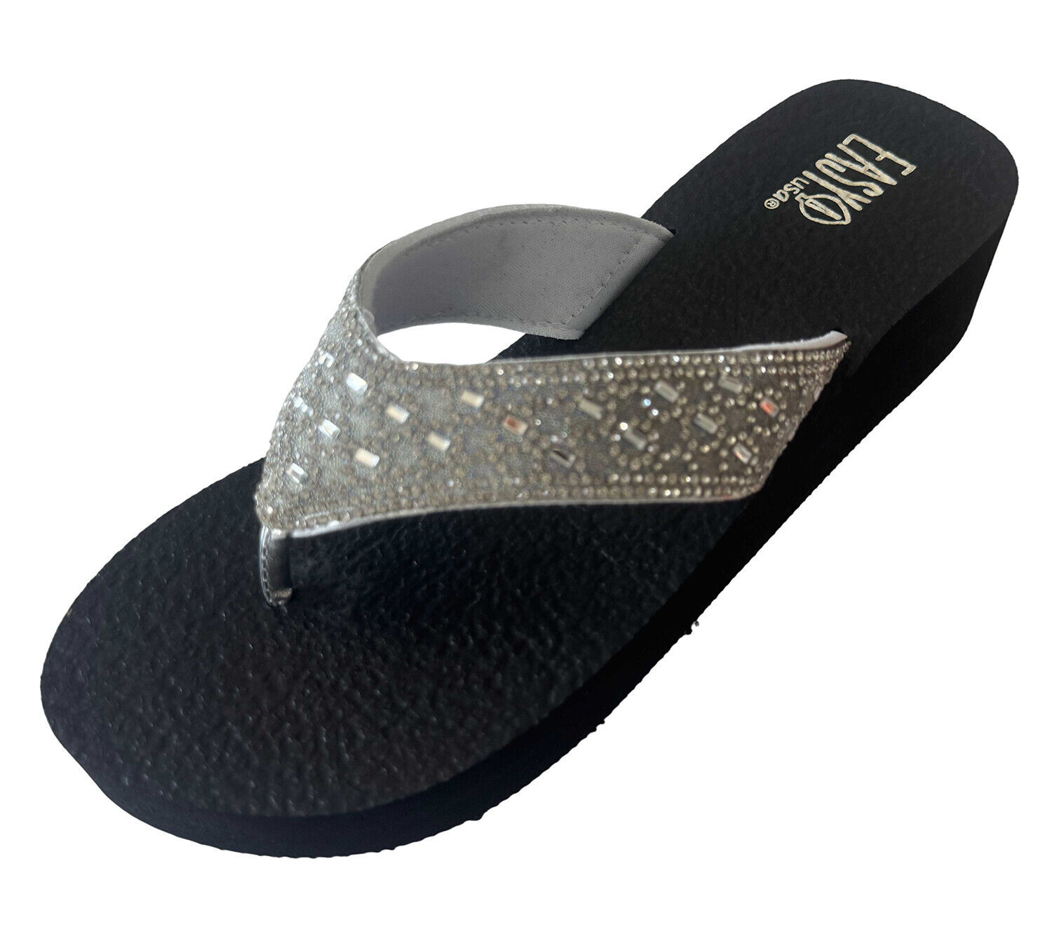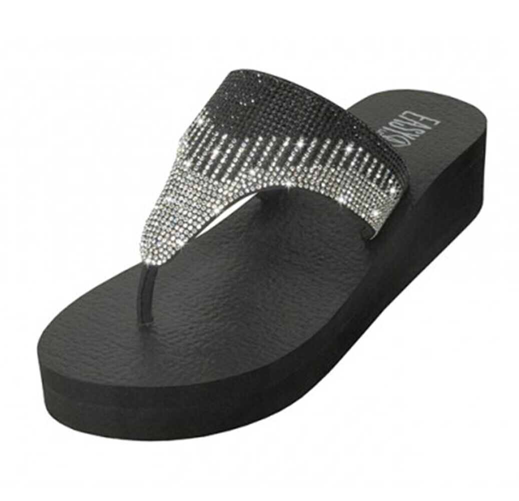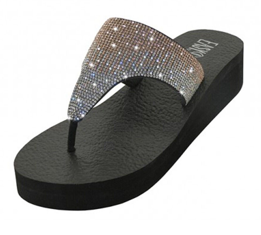 - Women's Flip Flops Sandals Rhinestone Beaded Platform Wedge Thong Shoes Sizes