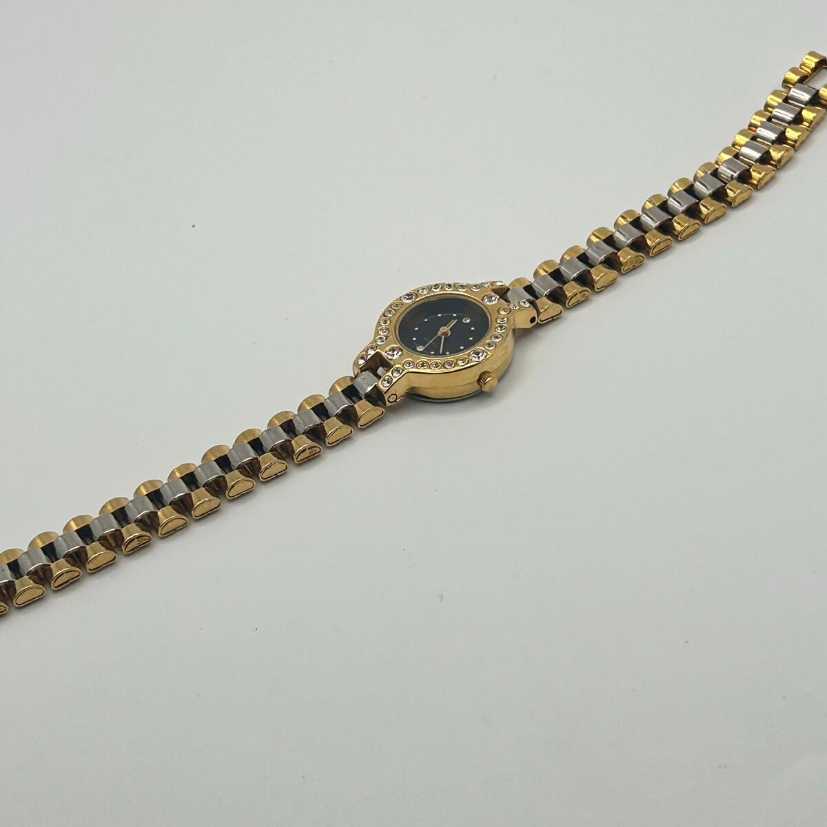 This beautiful women's quartz watch features a stunning combination of gold and silver tones, accented with sparkling crystals. The watch is made with durable stainless steel and has a brand new battery installed, so it's ready to wear and enjoy.