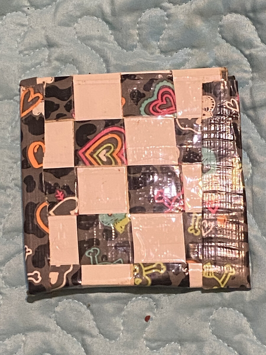 - Women’s Handmade Duct Tape Square Pattern Black White Wallet Change Purse