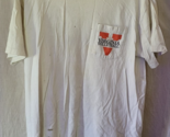 This shirt is WELL WORN. As seen in the photos there are some holes and discolorations. The size is Large. It would make a nice addition to a collection or to wear. This shirt was NOT washed with bleach due to people having sensitive skin. It could be brightened up with a good bleach washing.