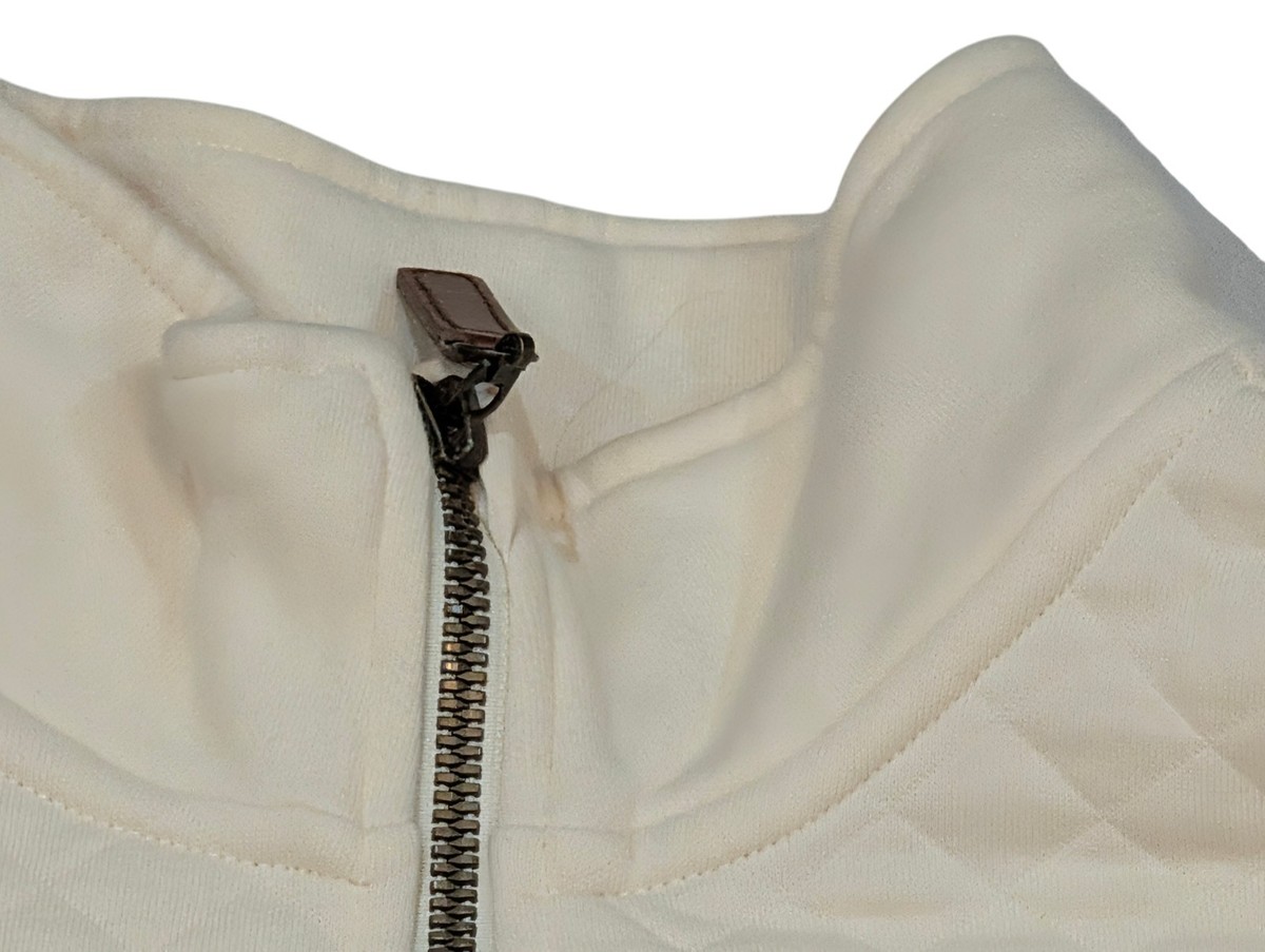 - Women's LL Bean Quilted 1/4 Zip Pullover sweatshirt Size Large Petite Cream EUC