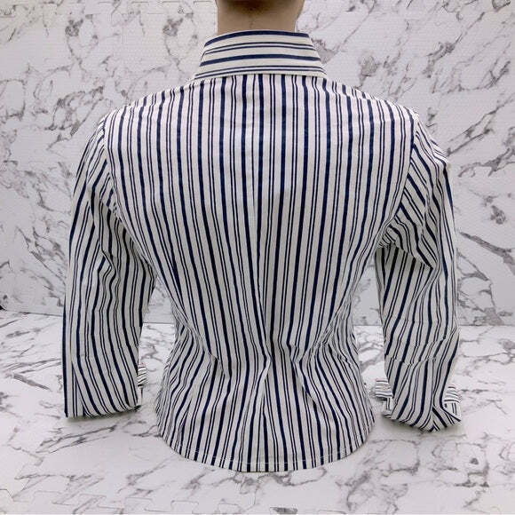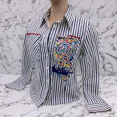 Women?s Miskeen Navy | White Striped Hand-Painted Button Down Shirts NWT