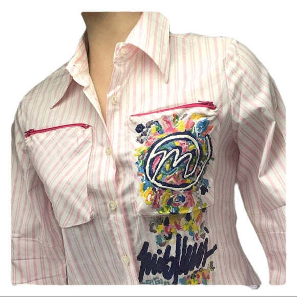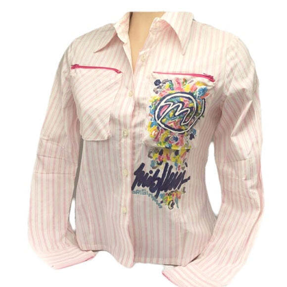 Women’s Miskeen Pink | White Striped Button Down Shirts NWT