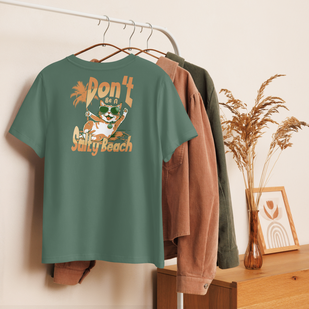 Simple at the front, attitude at the back. The Don’t Be A tee in Green Bay brings playful rebellion to your everyday look with a bold back print that speaks for itself. Crafted from 100% organic cotton, this tee delivers on both comfort and conscience—perfect for pairing with denim, skirts, or layered under jackets.