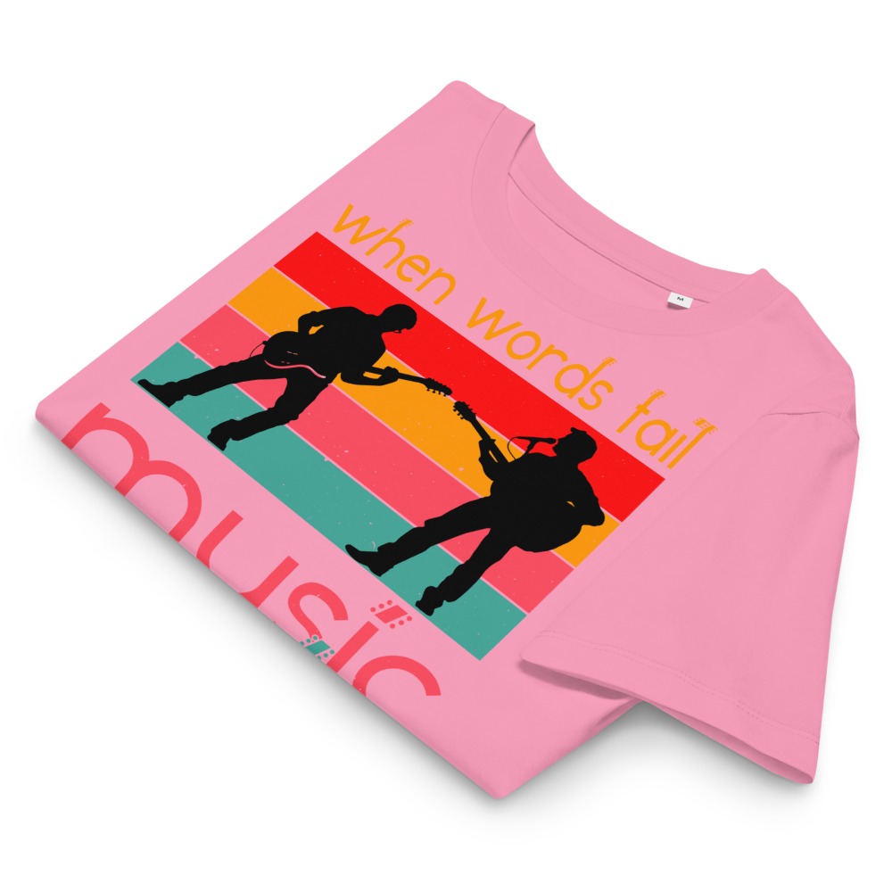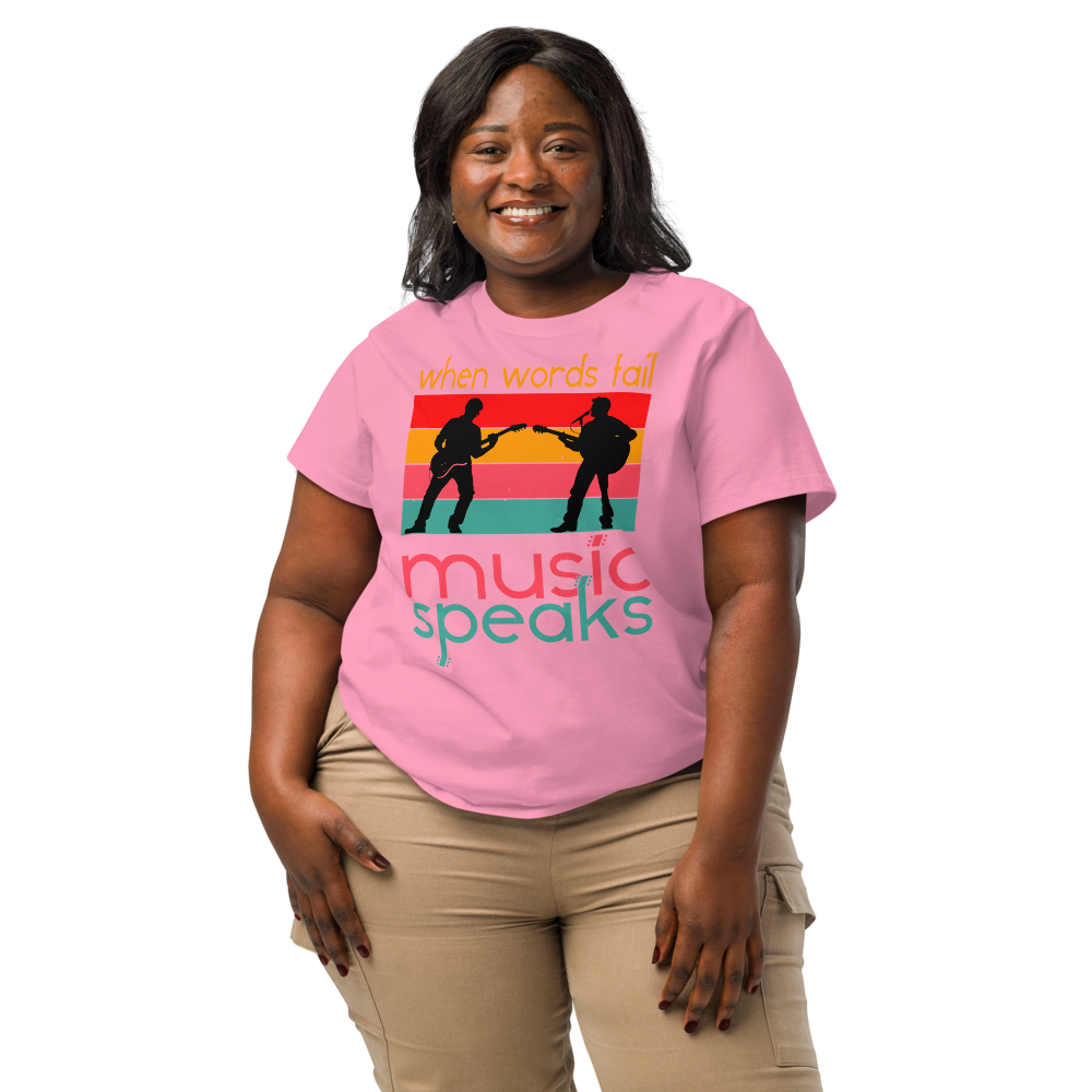 Let your style sing with this soft and flattering women’s organic tee, featuring the inspirational When Words Fail, Music Speaks design. Crafted from 100% organic cotton, this t-shirt blends comfort, sustainability, and a message that resonates with every music lover.