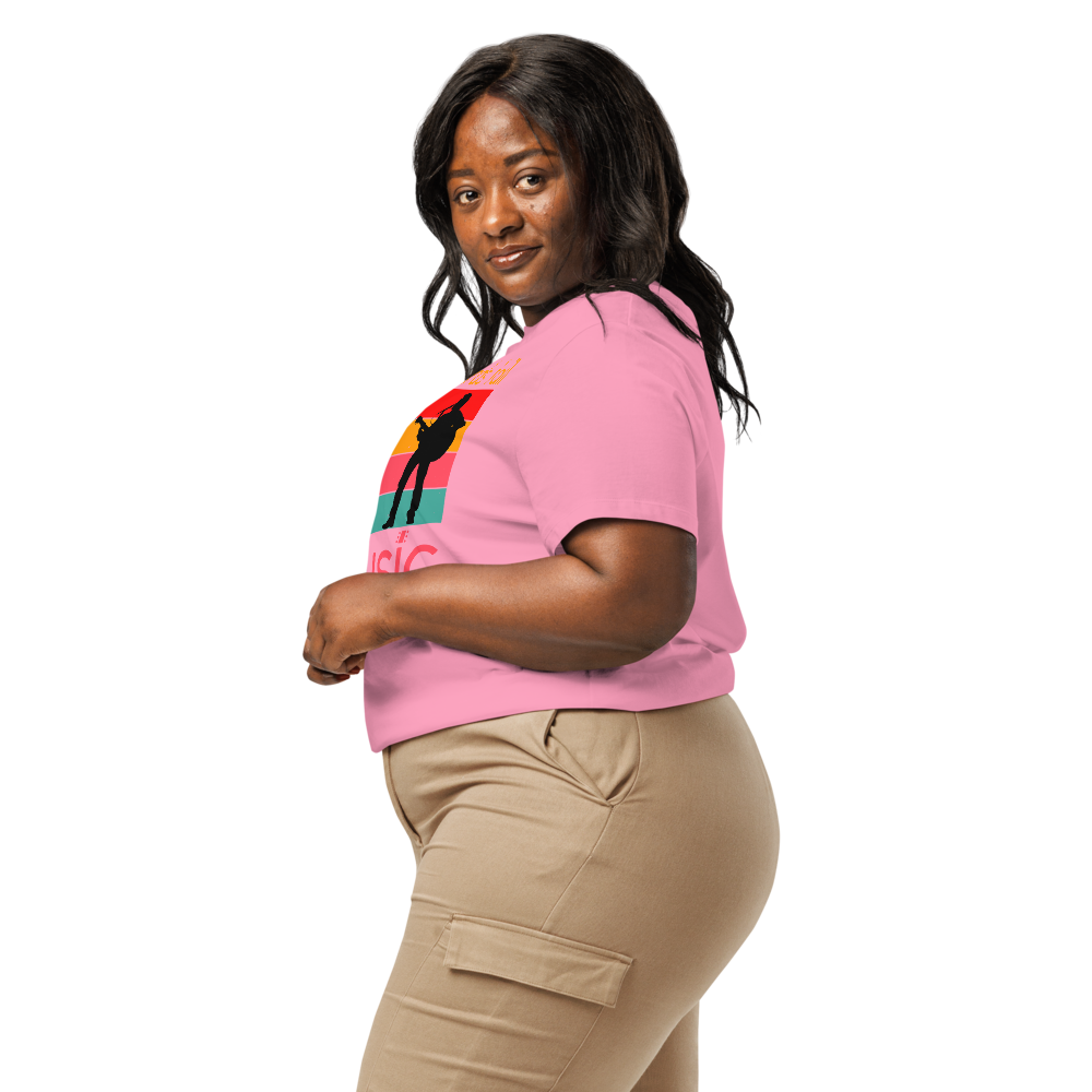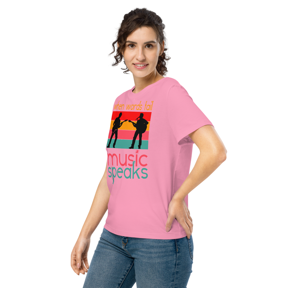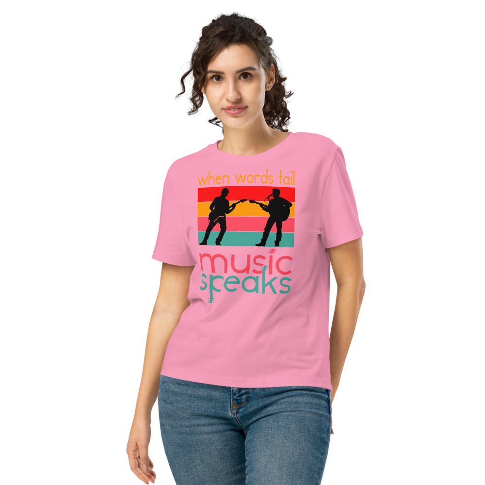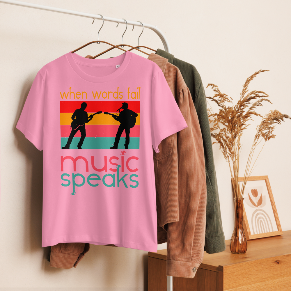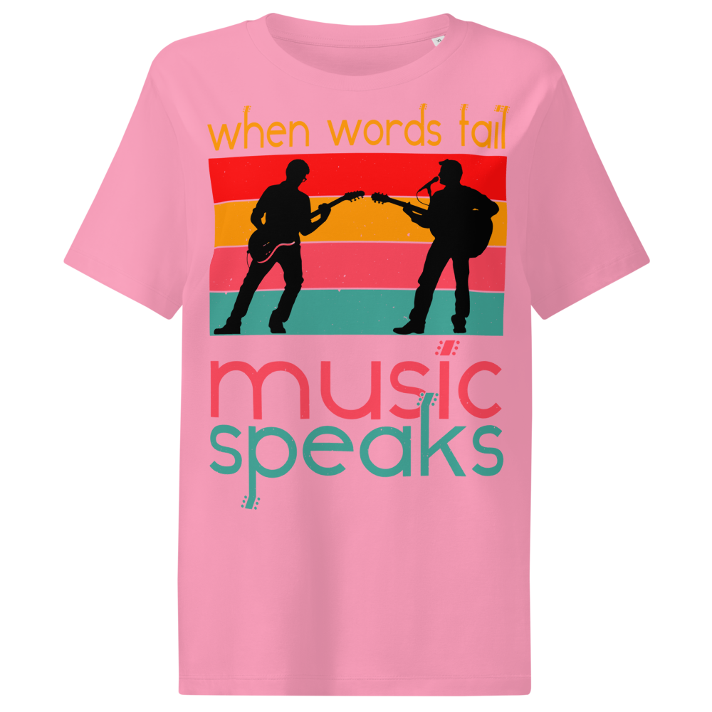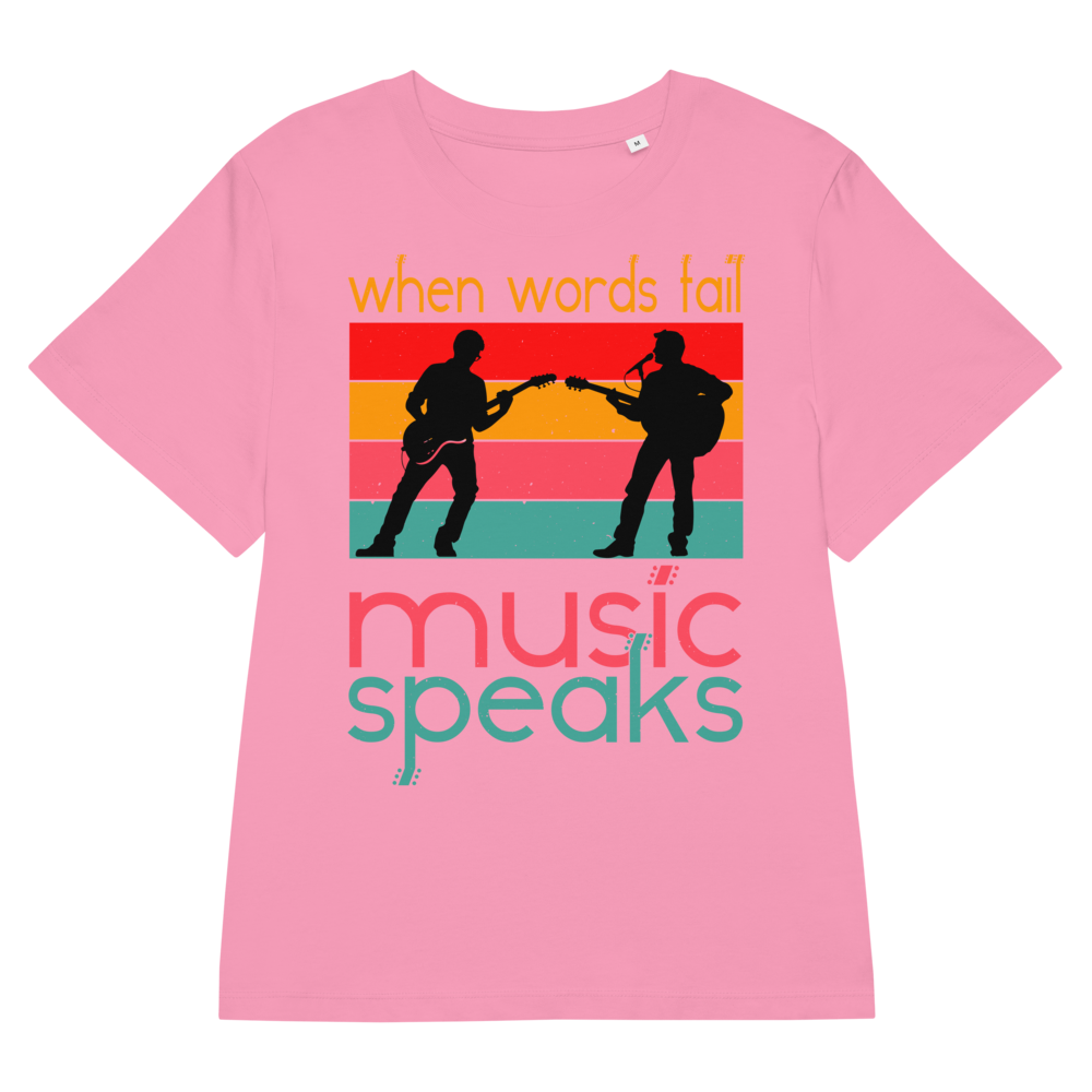 Women’s Organic Ribbed Neck T-Shirt – When Words Fail, Music Speaks(Bubble Pink)