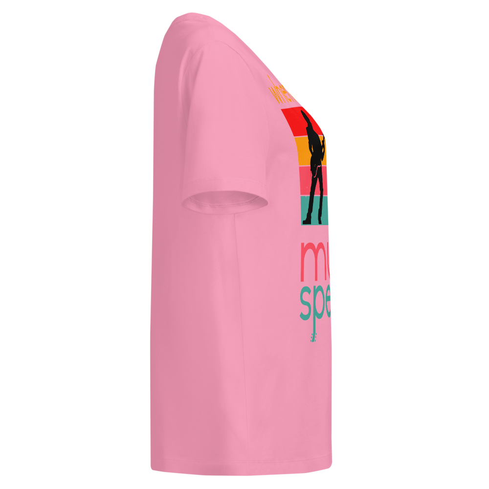 - Women’s Organic Ribbed Neck T-Shirt – When Words Fail, Music Speaks(Bubble Pink)