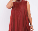 Plus Size Dress features: sleeveless, swing, high neckline, nude illusion, back keyhole, back double button closure, lined, mini length