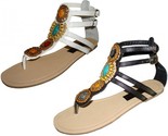 - Women's Sandals Gladiator Strappy Flats T-Strap Thong Beaded Shoes, Sizes: 5-10