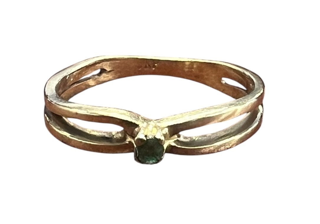 Type: Solitaire ringWeight: 1.2Karat: 10ktMetal: Yellow GoldGender: Women'sStyle: SolitaireSize / Length: 6.25Owner applied: 10KStone 1 quantity: 1Stone 1 shape: RoundStone 1 color: GreenStone 1 weight (total): .03Stone 1 type: EmeraldCondition:Used