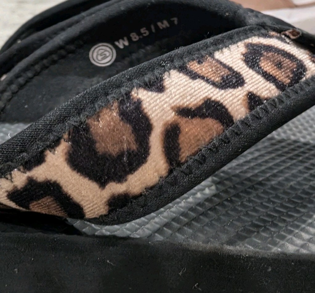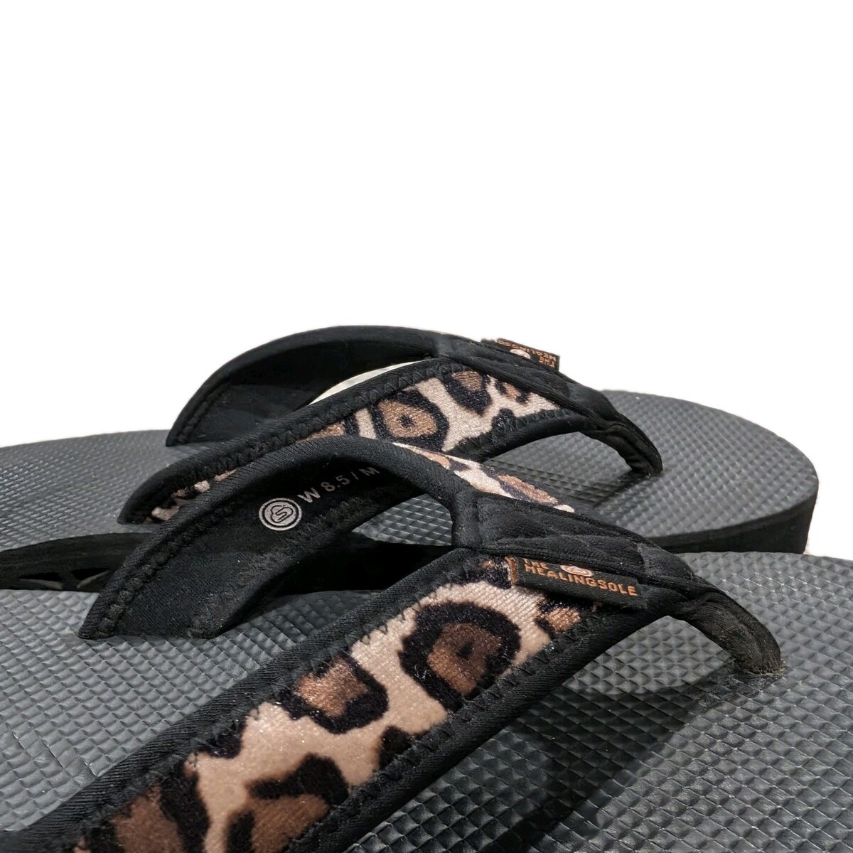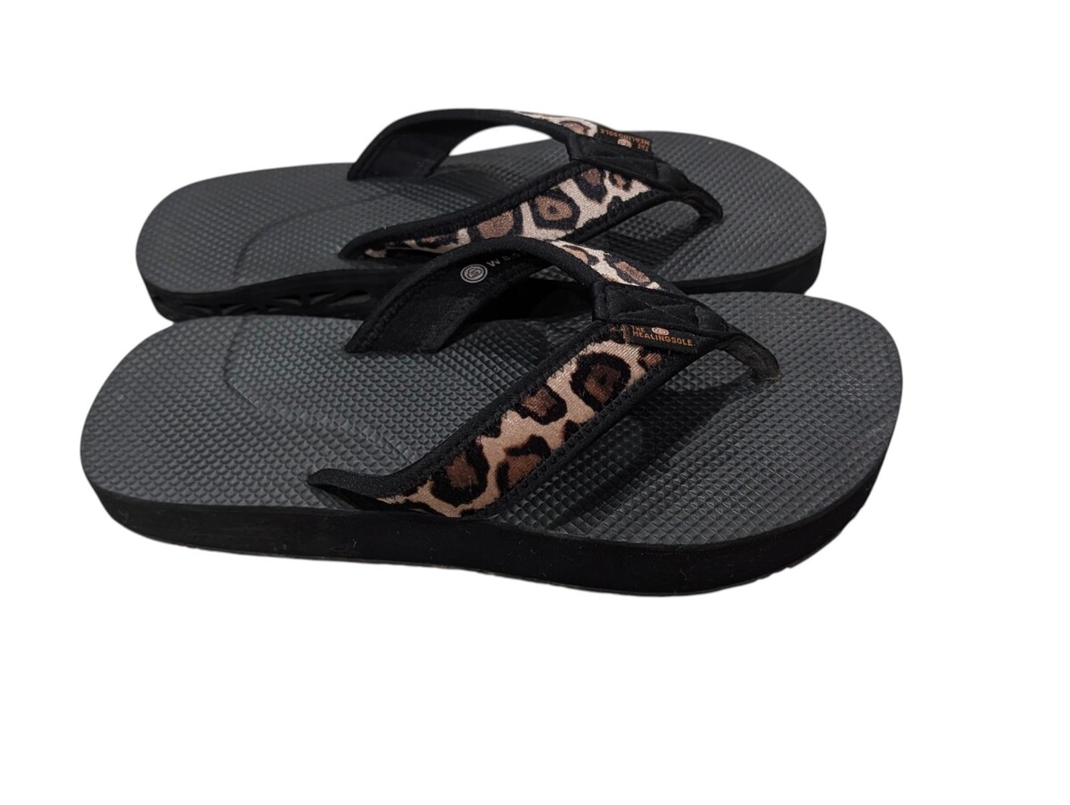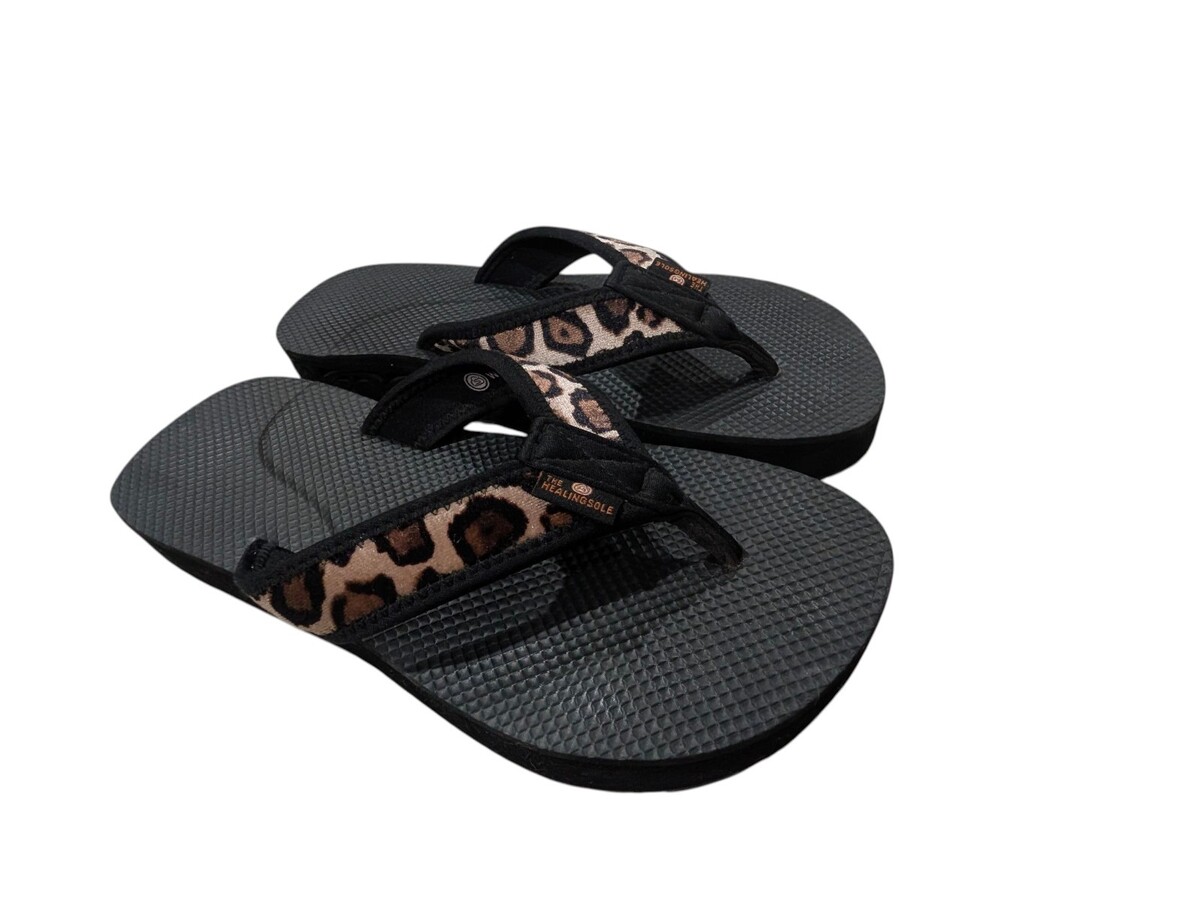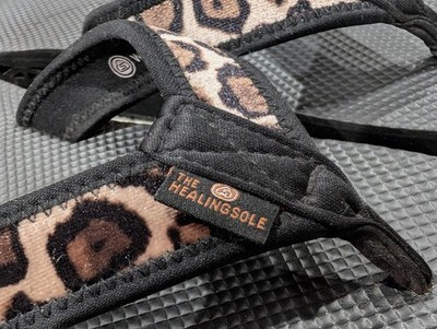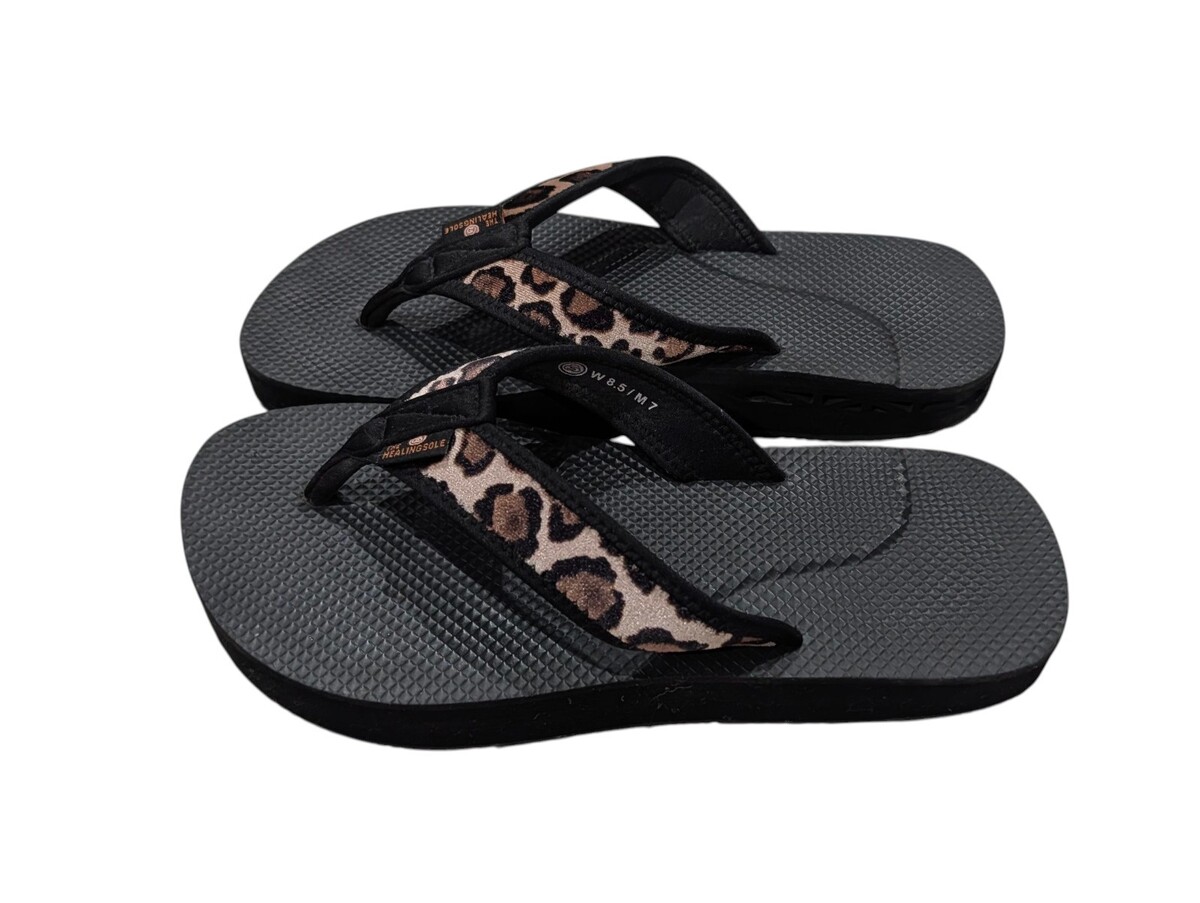 These are beautiful womens the healing soul flip flops specifically made for relief of plantar fasciitis. Women's size 8.5. beautiful cheetah print. These flip-flops are in mint condition! They look like brand new
