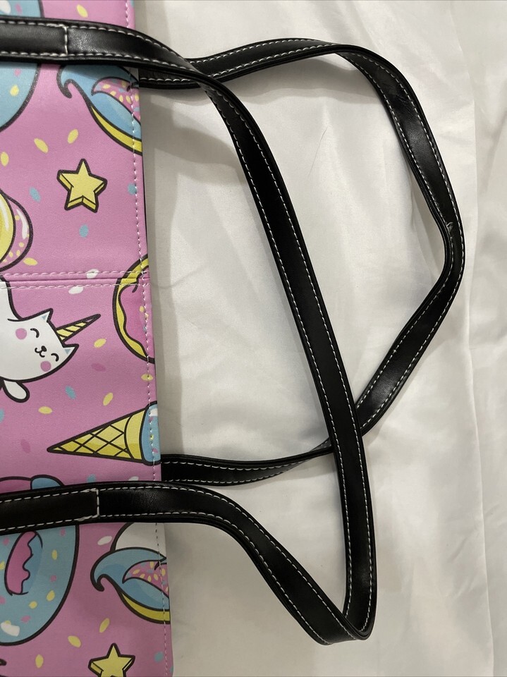 Women’s Tote Purse Unicorn Unicat Ice Cream Donuts Design Pink 15”x10” NWOT