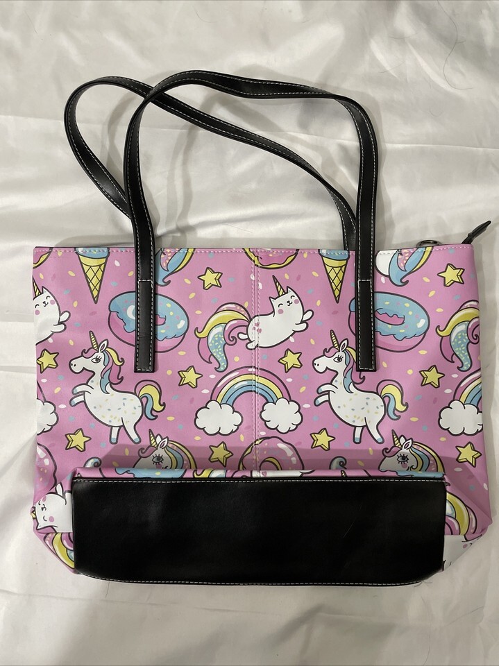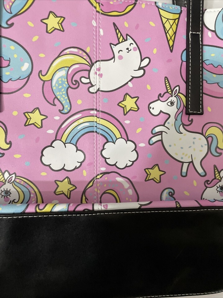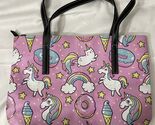 - Women’s Tote Purse Unicorn Unicat Ice Cream Donuts Design Pink 15”x10” NWOT