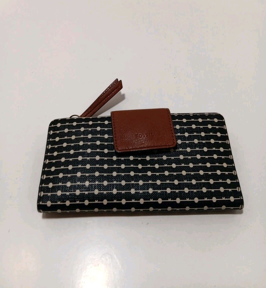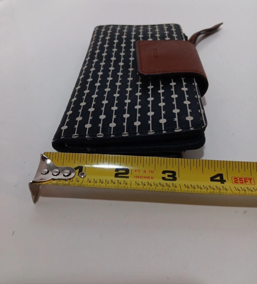 - Women’s Vintage Fossil Wallet Black White Key Striped Tab Snap Closure Vintage