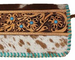 - Women's Western Cowhide Turquoise Laced Floral Tooled Leather Wallet Clutch