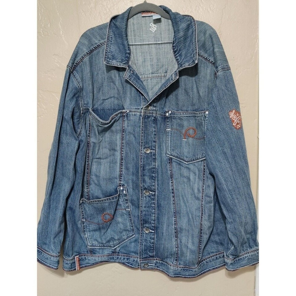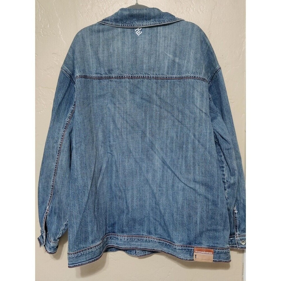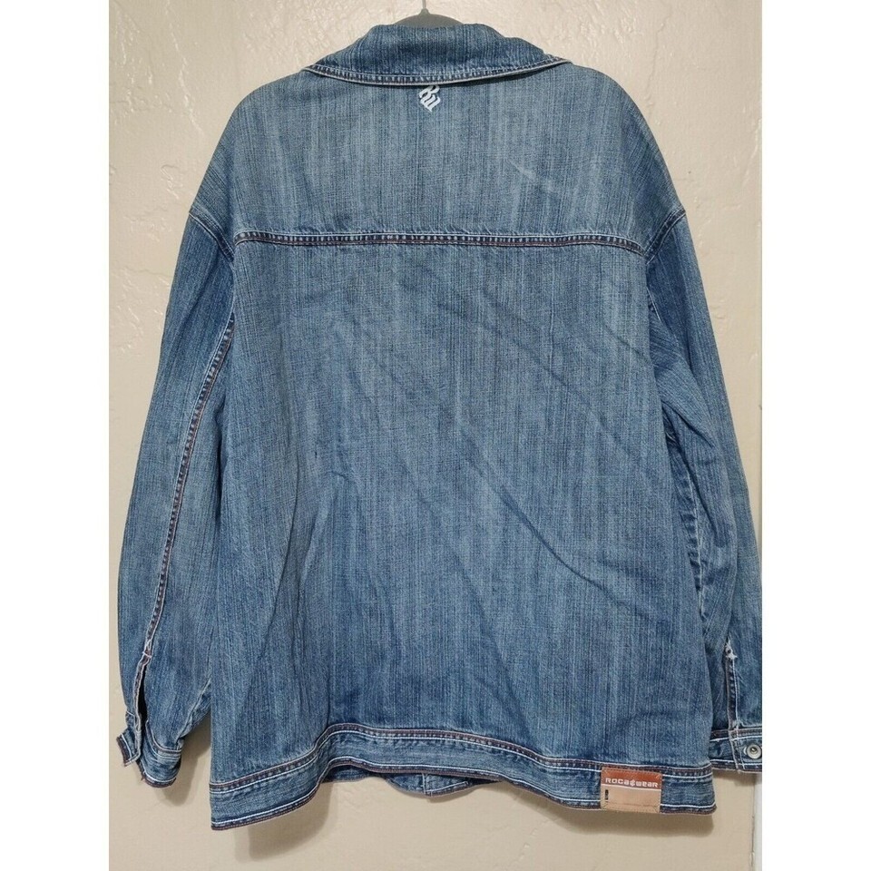 Womens 2XL DENIM Jacket dark blue cotton Roca Wear Chest 58" Length 25"