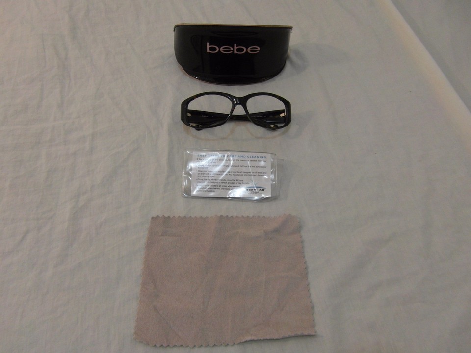 - Womens Bebe Tortoise Shell Bejeweled Arms Glasses Frame Microfiber Cloth