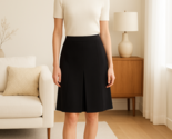 This classic, black pleated A-line skirt by Kasper Separates is designed for style and comfort.