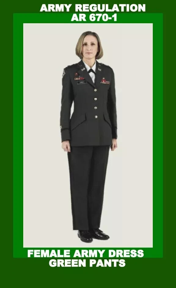 - WOMENS Class A OFFICER Serge Green US Army Dress Pants W/ BLACK BRAID All Sizes