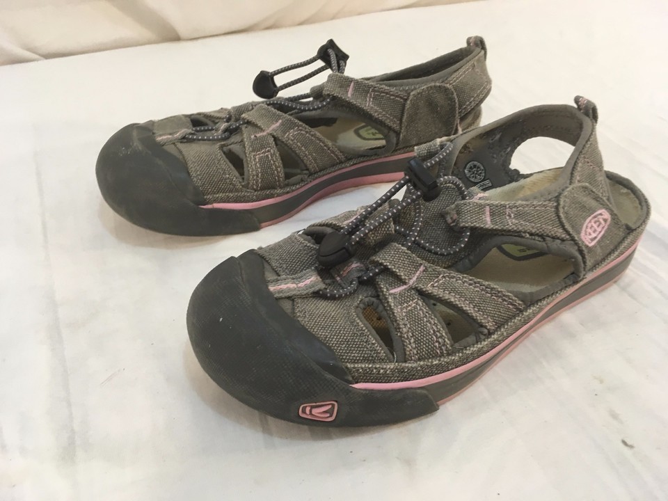 - Womens Keen Gray Strappy Closed Toe 7 Canvas Slip On Outdoor Waterproof Sandals