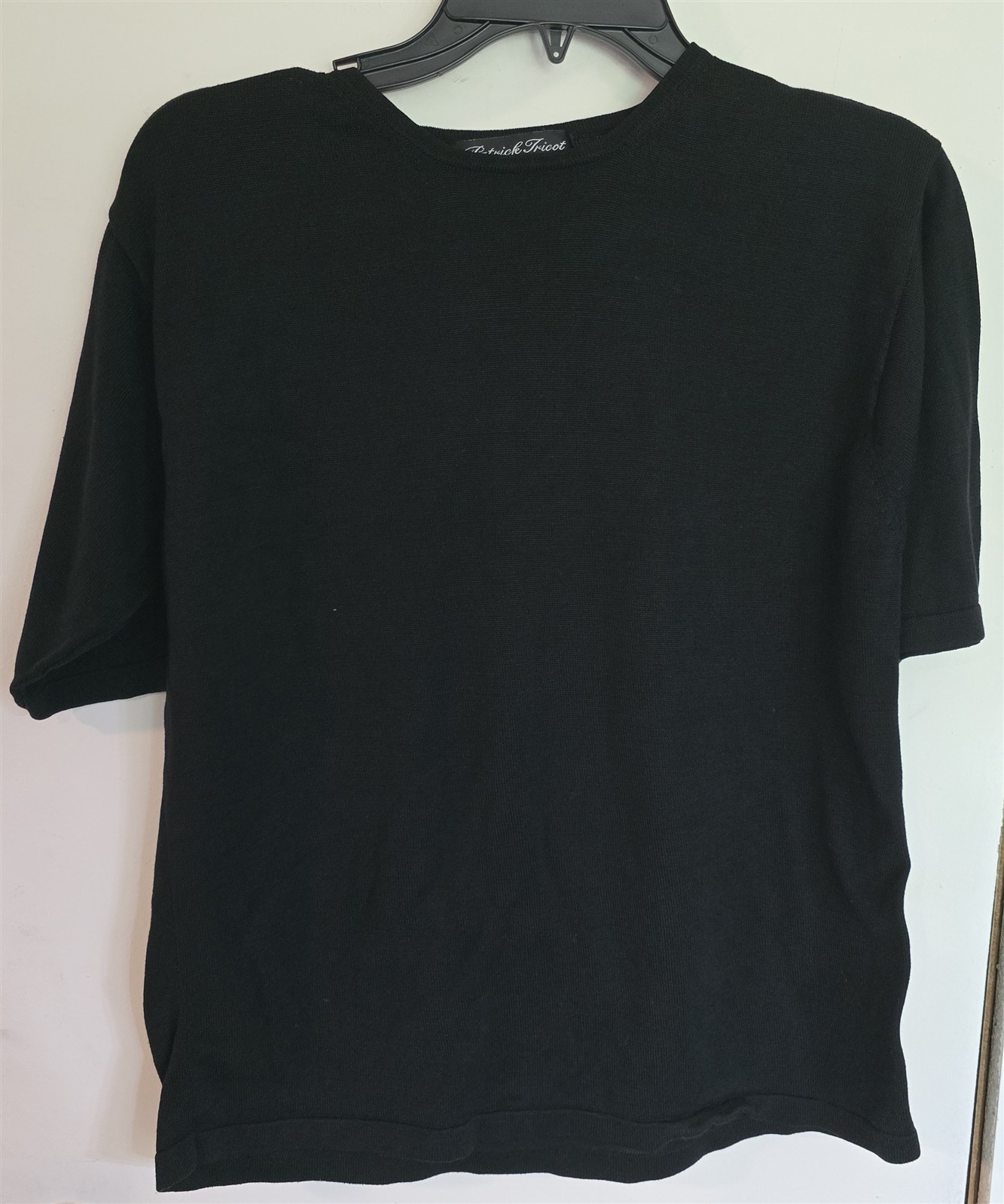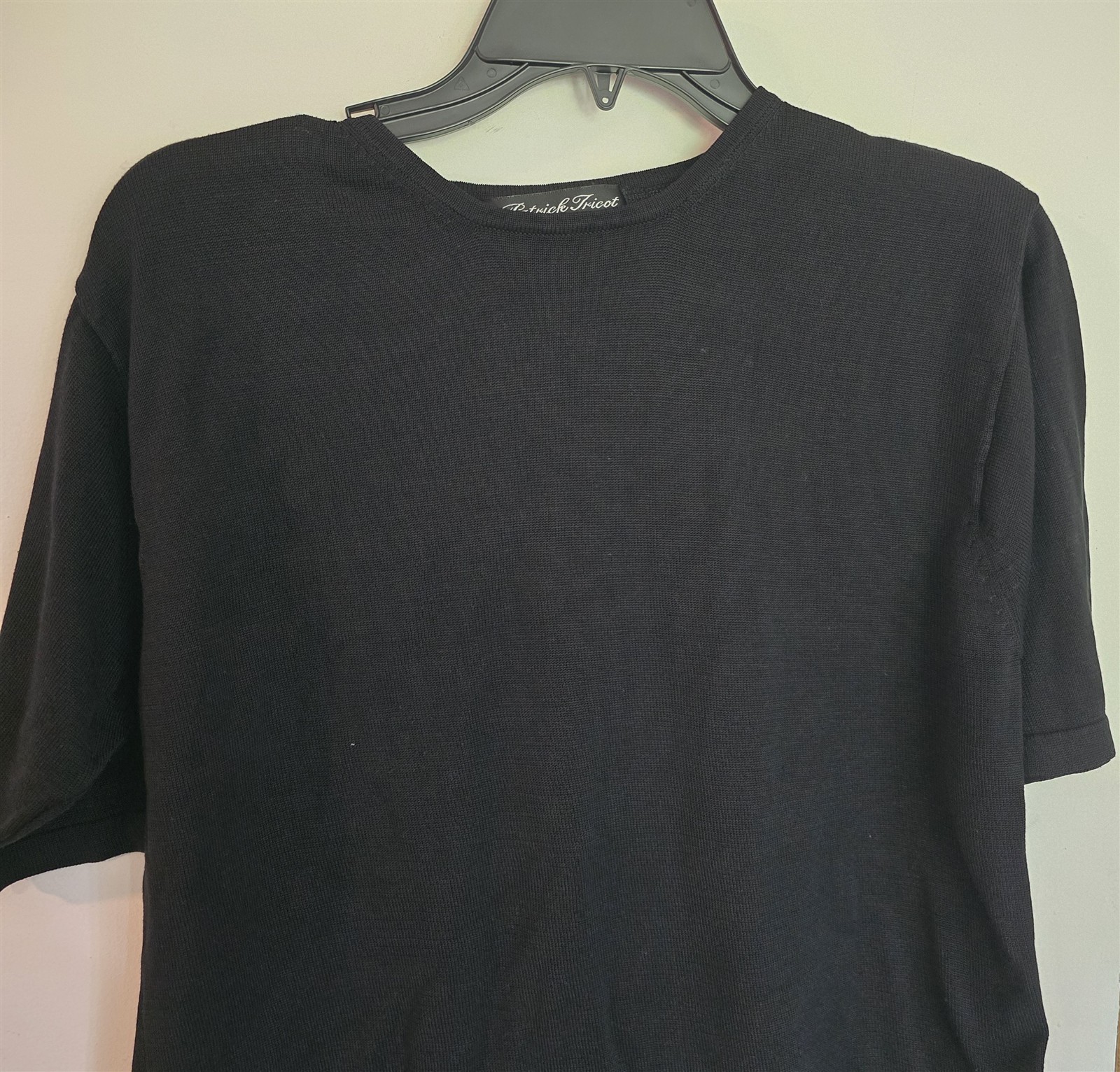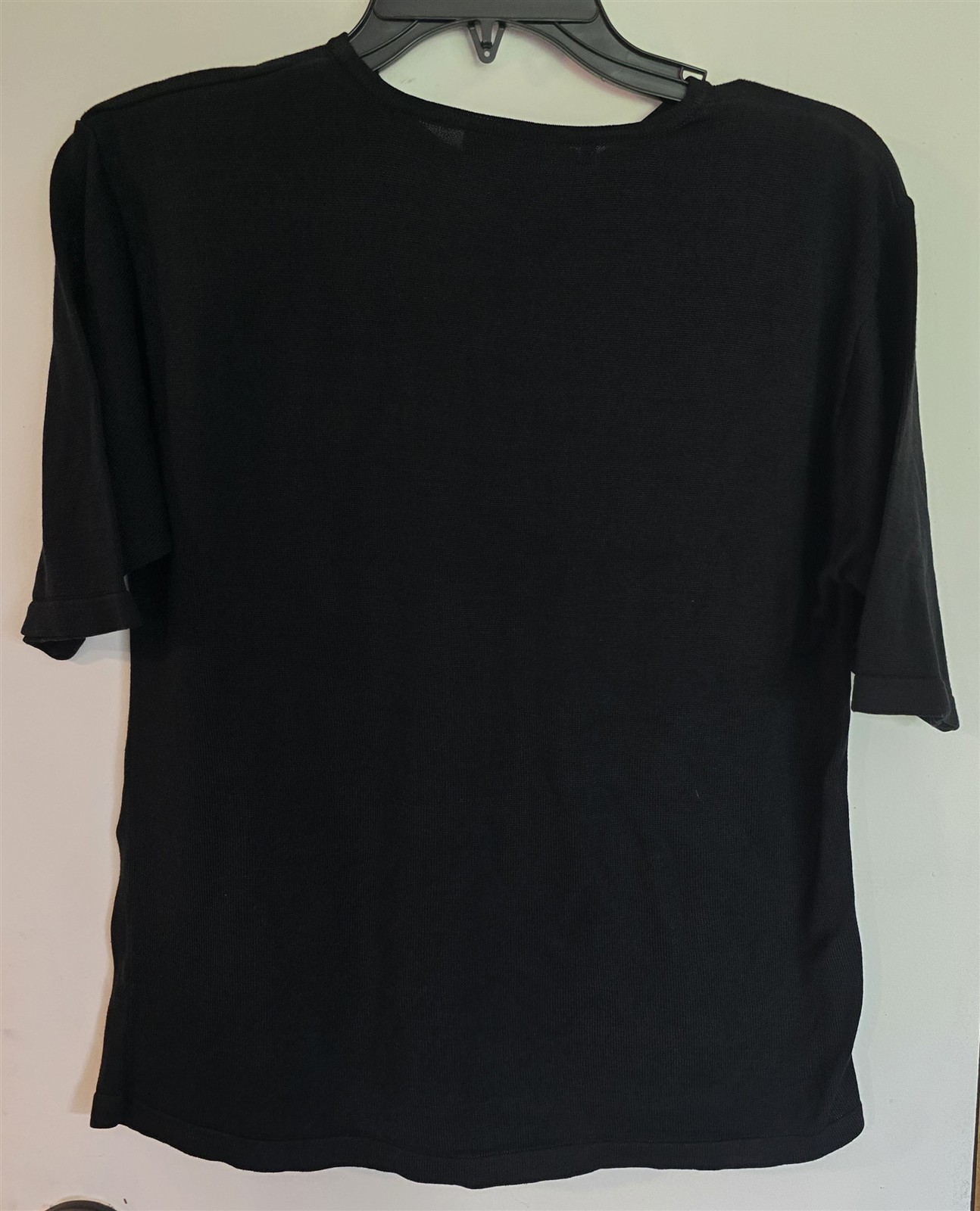 Womens L Patrick Tricot Black 100% Silk Short Sleeve Shirt Top Blouse