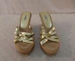 - WOMENS METRO 7 GOLD STRAPPY SLIP ON 4 INCH WEDGE BACKLESS HIGH HEELS US 7