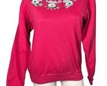 Women's Red Christmas Holiday Sweatshirt Embroidered Reindeer Embellished Size M?