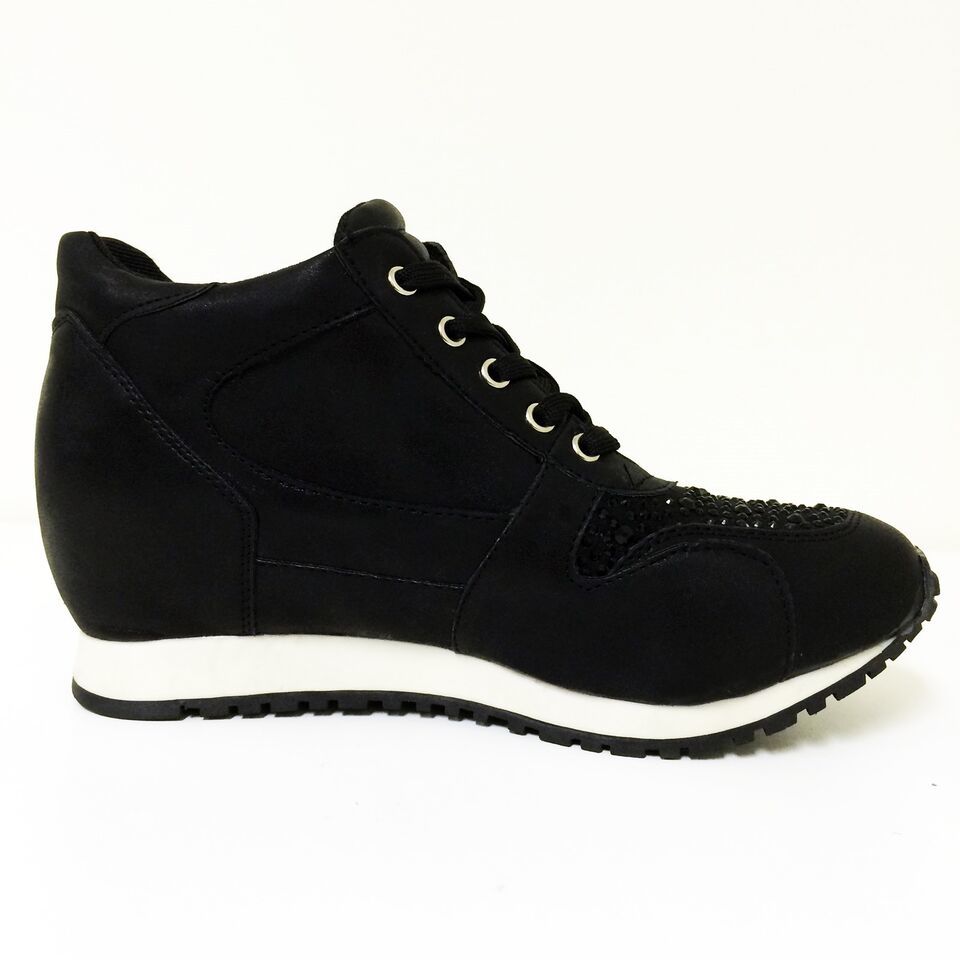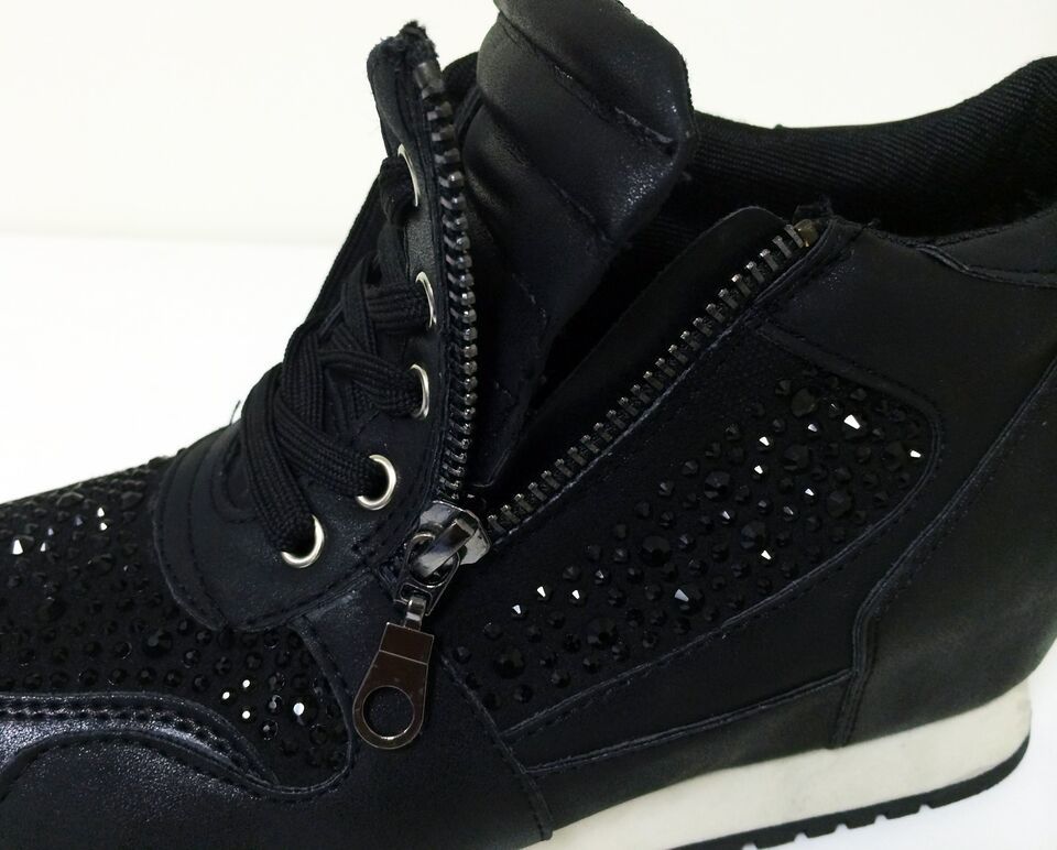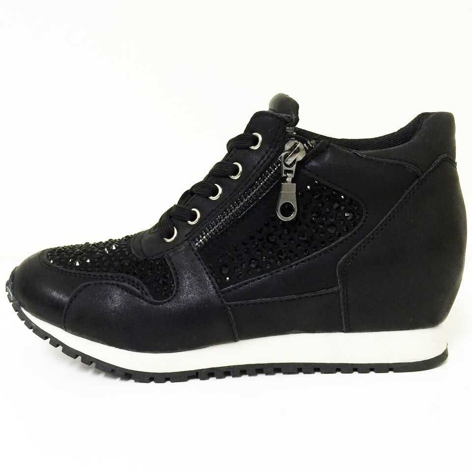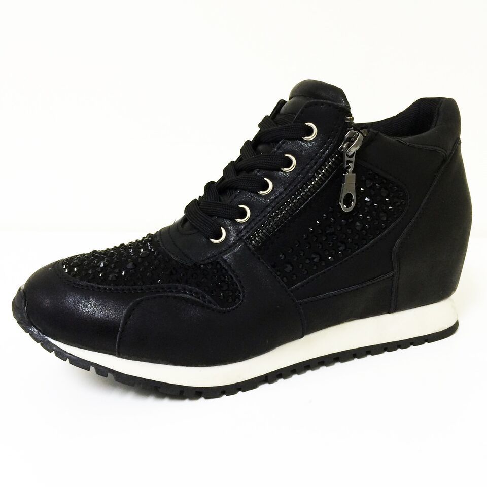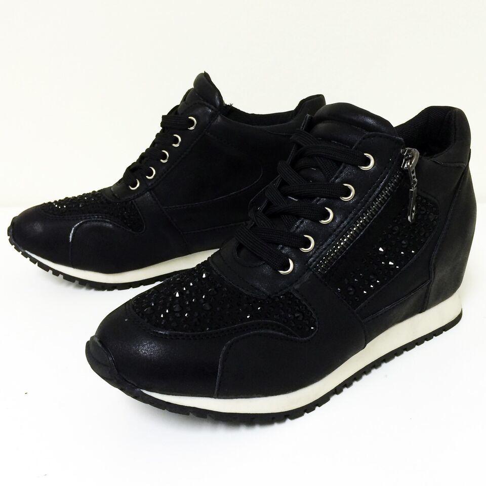- Womens Sneakers High Top Lace Up Rhinestone Zipper Heel Hidden Wedge Boots Sizes