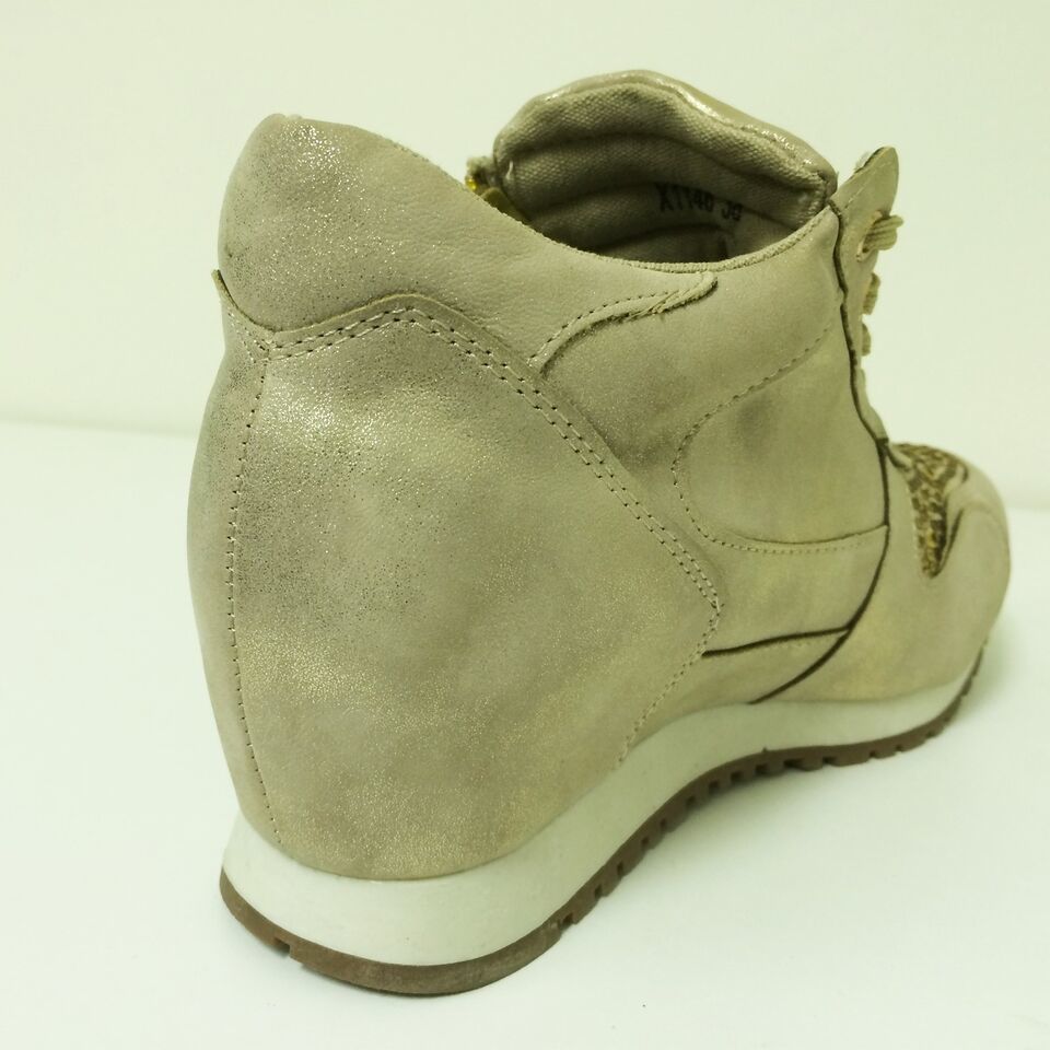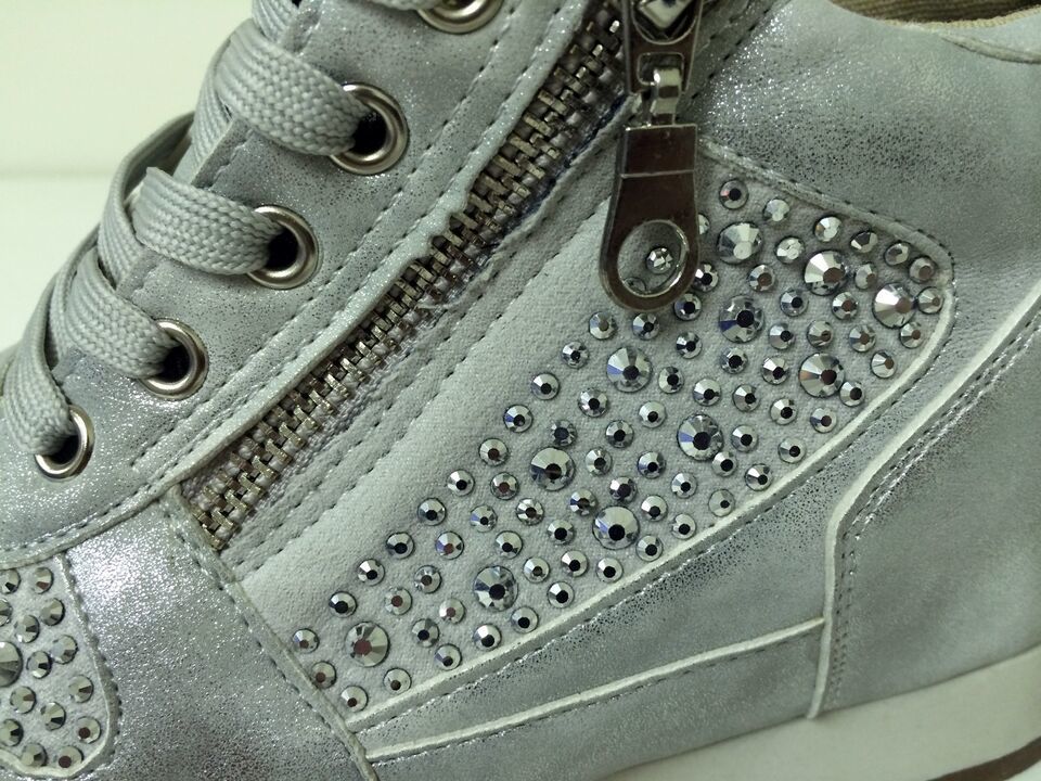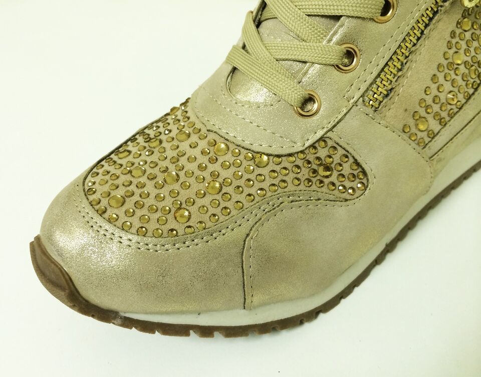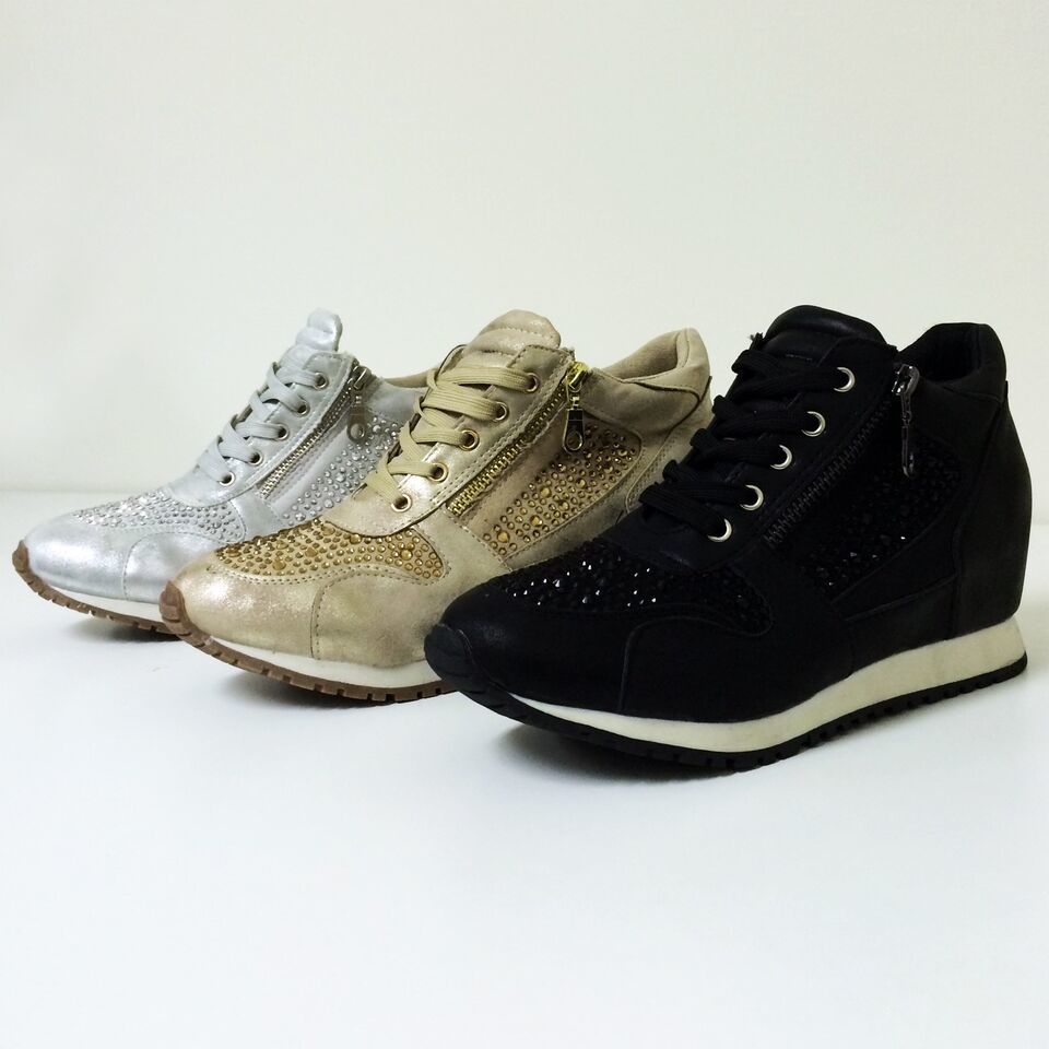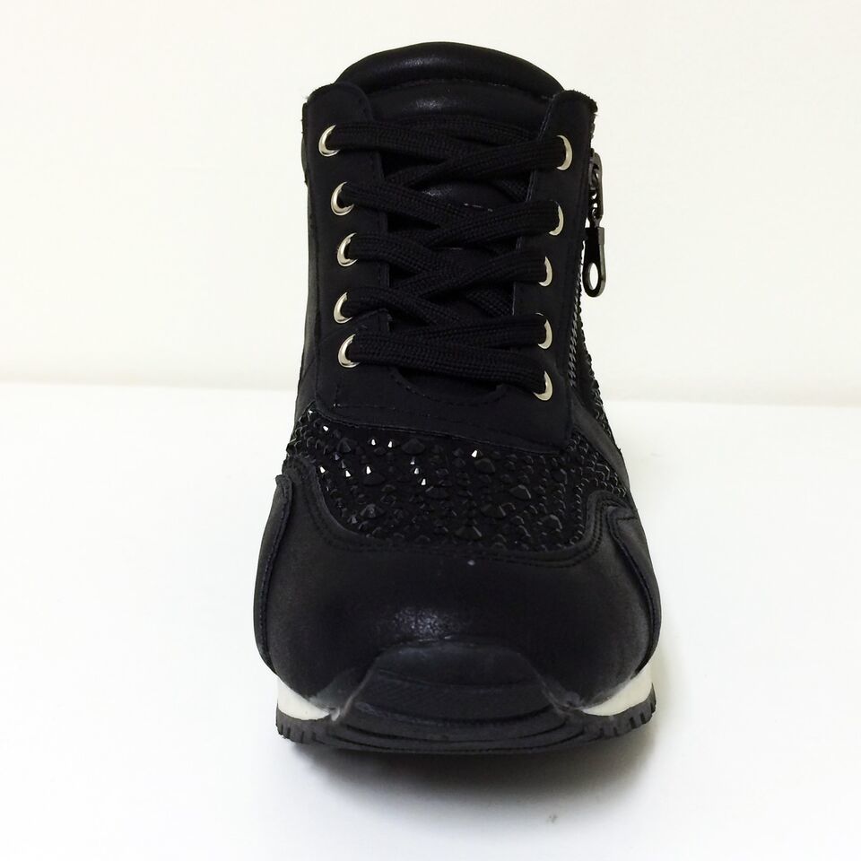 - Womens Sneakers High Top Lace Up Rhinestone Zipper Heel Hidden Wedge Boots Sizes