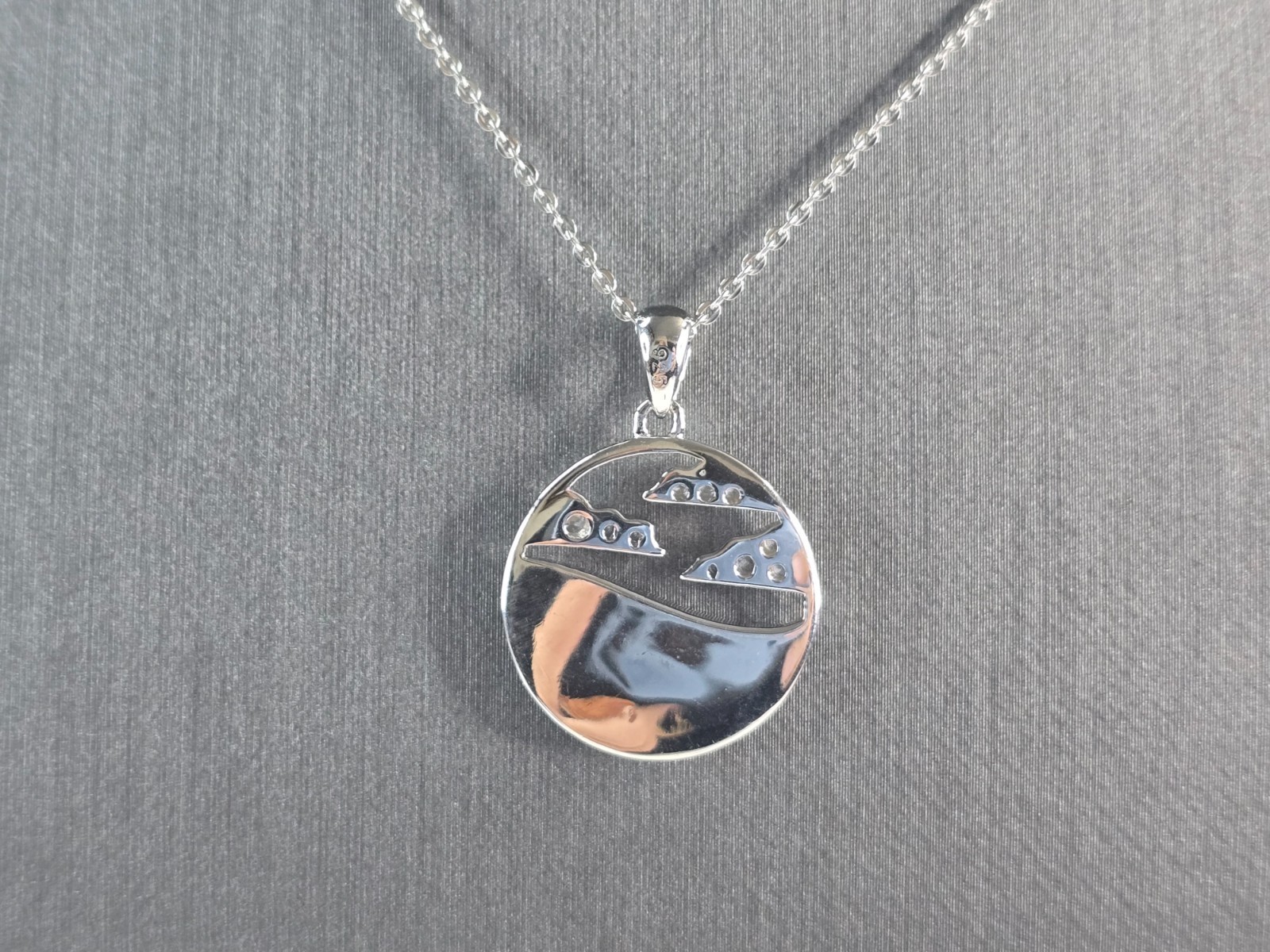 A WOMENS STERLING SILVER BLUE OPAL OCEAN , WAVE, CLOUD PENDANT WITH NECKLACE. THE PENDANT WITH NECKLACE WEIGHS 5.7g. THE PENDANT MEASURES 1" LONG BY 3/4" WIDE, AND THE NECKLACE MEASURES 18" LONG, ADJUSTABLE TO 16". NOT SURE IF STONES ARE NATURAL OR MAN MADE. MAKES A GREAT GIFT FOR THAT SOMEONE SPECIAL. ANY QUESTIONS, PLEASE ASK. BE SURE TO CHECK OUT OUR OTHER ITEMS FOR SALE.