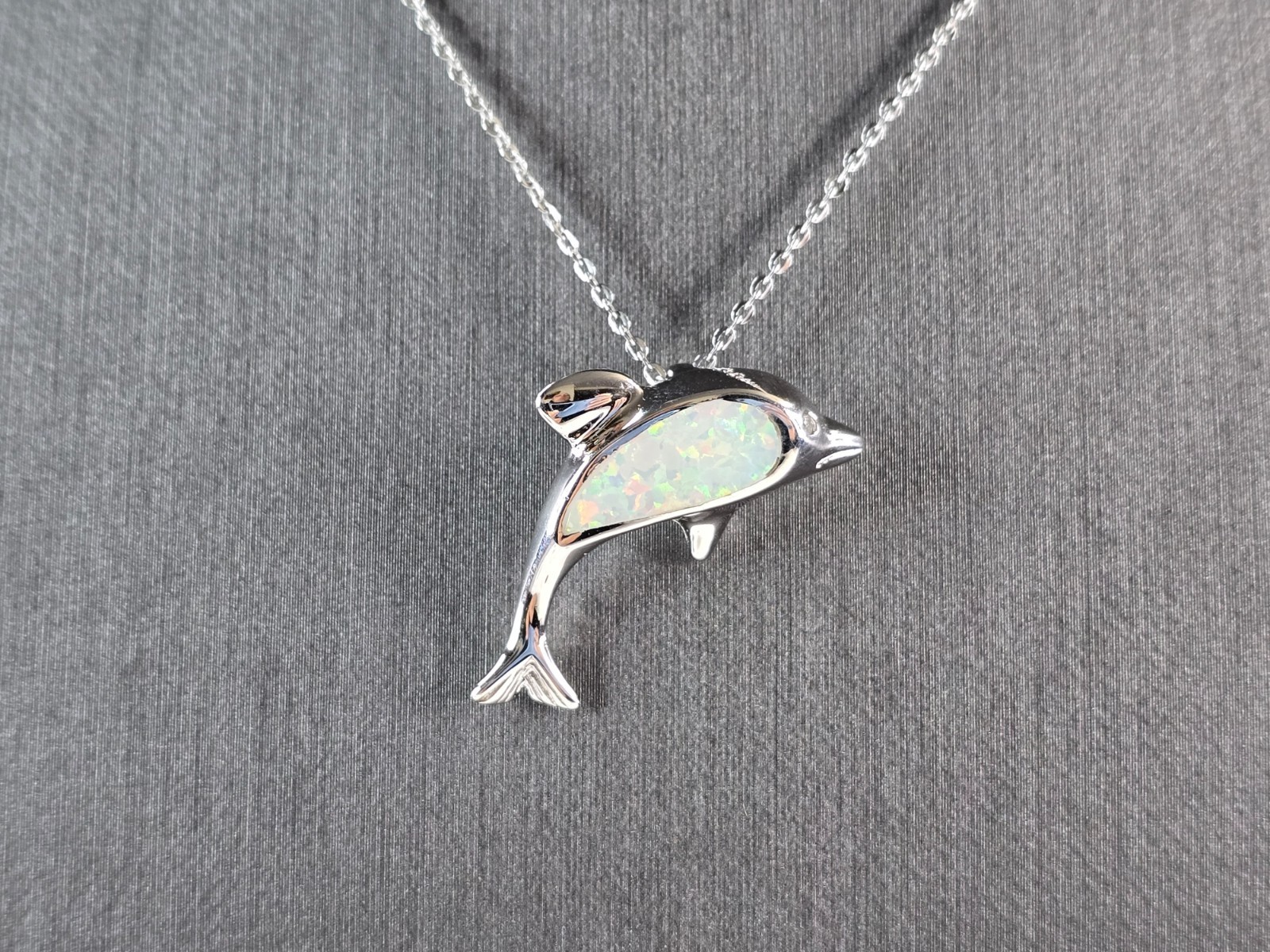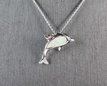 Womens Sterling Silver Opal Dolphin Pendant Necklace 4.3g E3657