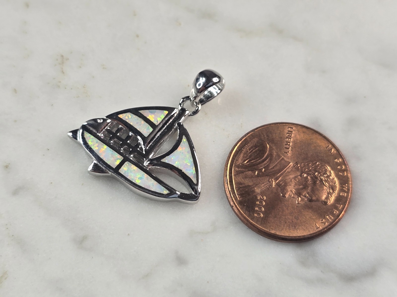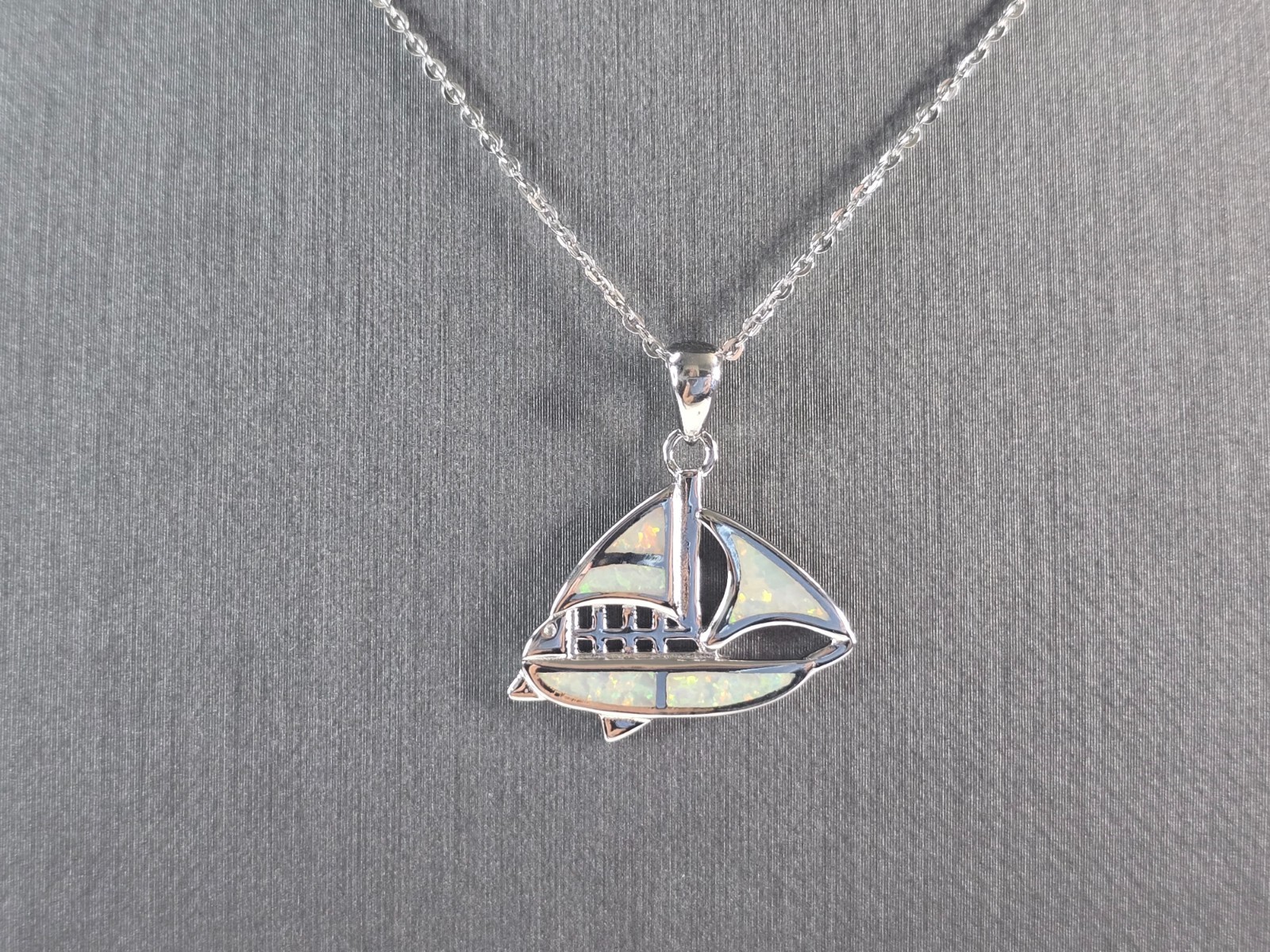 - Womens Sterling Silver Opal Sailboat Pendant Necklace 5.0g E4658
