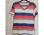 - Womens Striped V Neck T Shirt Red Blue White Casual Top Size S