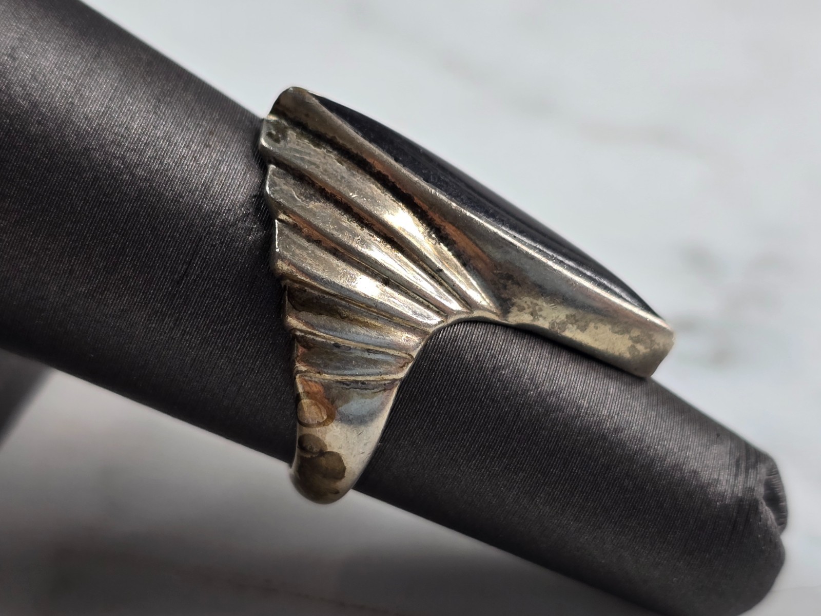- Womens Vintage Estate Sterling Silver Art Deco Onyx Ring 7.1g E3667