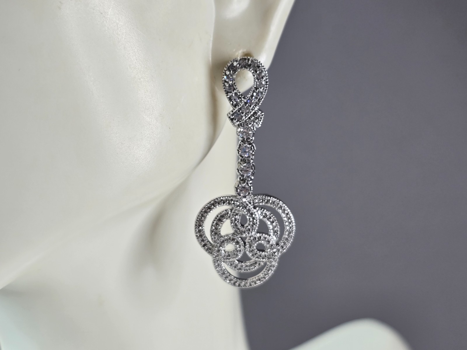 A PAIR OF WOMENS STERLING SILVER INFINITY KNOT CZ EARRINGS THAT WEIGH 7.0g AND MEASURES 1 1/2" LONG BY 5/8" WIDE. ANY QUESTIONS, PLEASE DO NOT HESITATE TO ASK. BE SURE TO CHECK OUT SOME OF MY OTHER GREAT ITEMS UP FOR SALE. THANK YOU