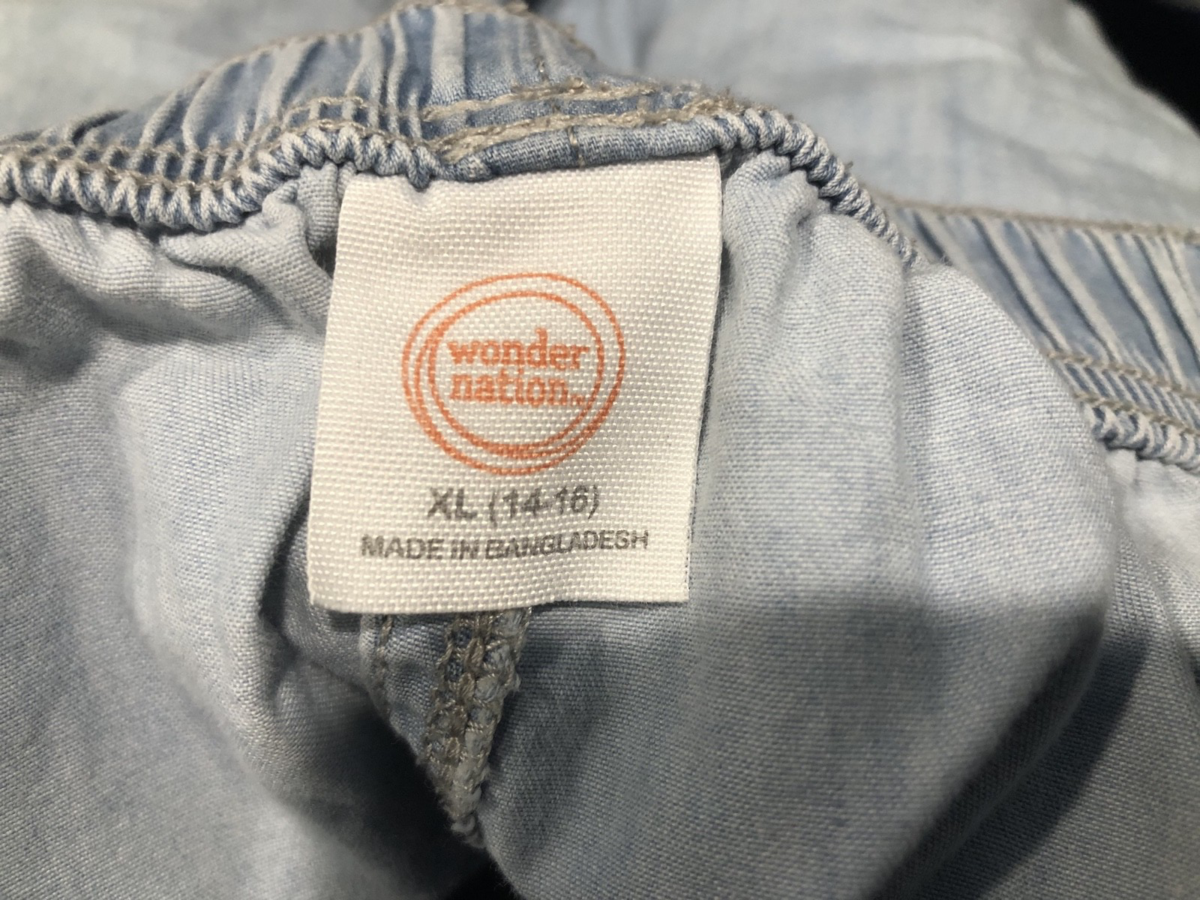 WONDER NATION GIRLS SHORTS (SKY BLUE) XL (14-16) STRETCH WAIST. COMES FROM SMOKE FREE HOME WITH FREE SHIPPING. 100% COTTON AND MACHINE WASH COLD. MADE IN BANGLADESH.