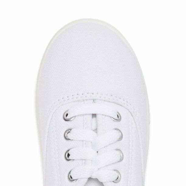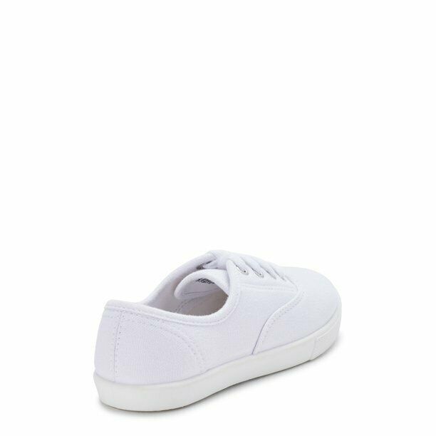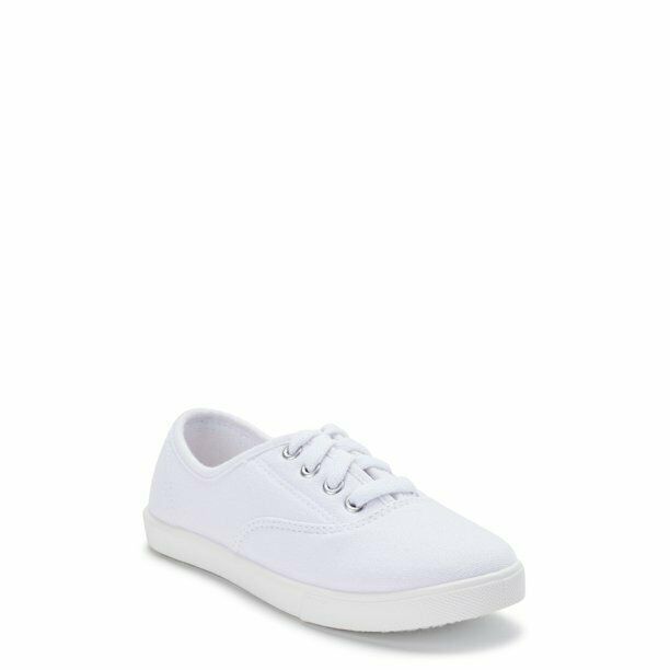 Classic, comfy and versatile, the Wonder Nation Girl's Lace-Up Canvas Casual Shoes are an essential addition to her everyday wardrobe. The non-marking sole is sturdy yet flexible, while a round toe completes the canvas shoes. Featuring a durable canvas upper with laces and an elastic heel for a snug fit, these casual shoes have a padded footbed for added comfort. Great for walking to school, romping around the playground, or hanging out with her friends. They're available in white and in black to effortlessly complement her casual outfit. She can pair them with her school uniform, her favorite leggings or a dress; these shoes work all year round. Kids deserve clothes that are fun to wear, made to last and celebrate their relentless sense of wonder. That's why Wonder Nation offers effortless outfit options and durable, adorable styles for kids on the move.