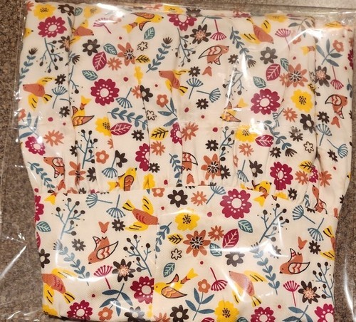 Cream colored background with multicolored floral pattern throughout